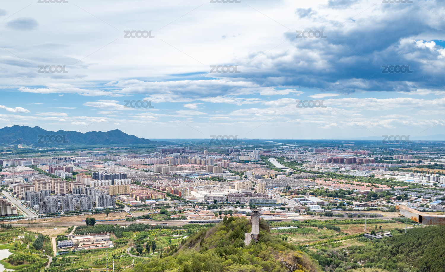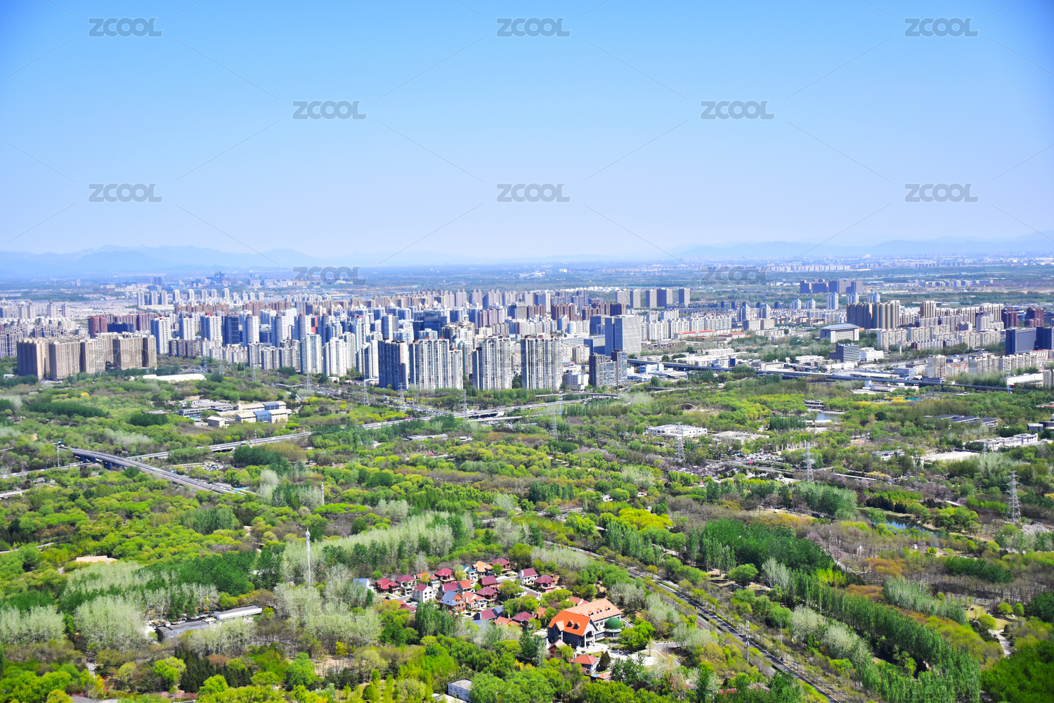 春季下午北京百望山远眺北京城市建筑