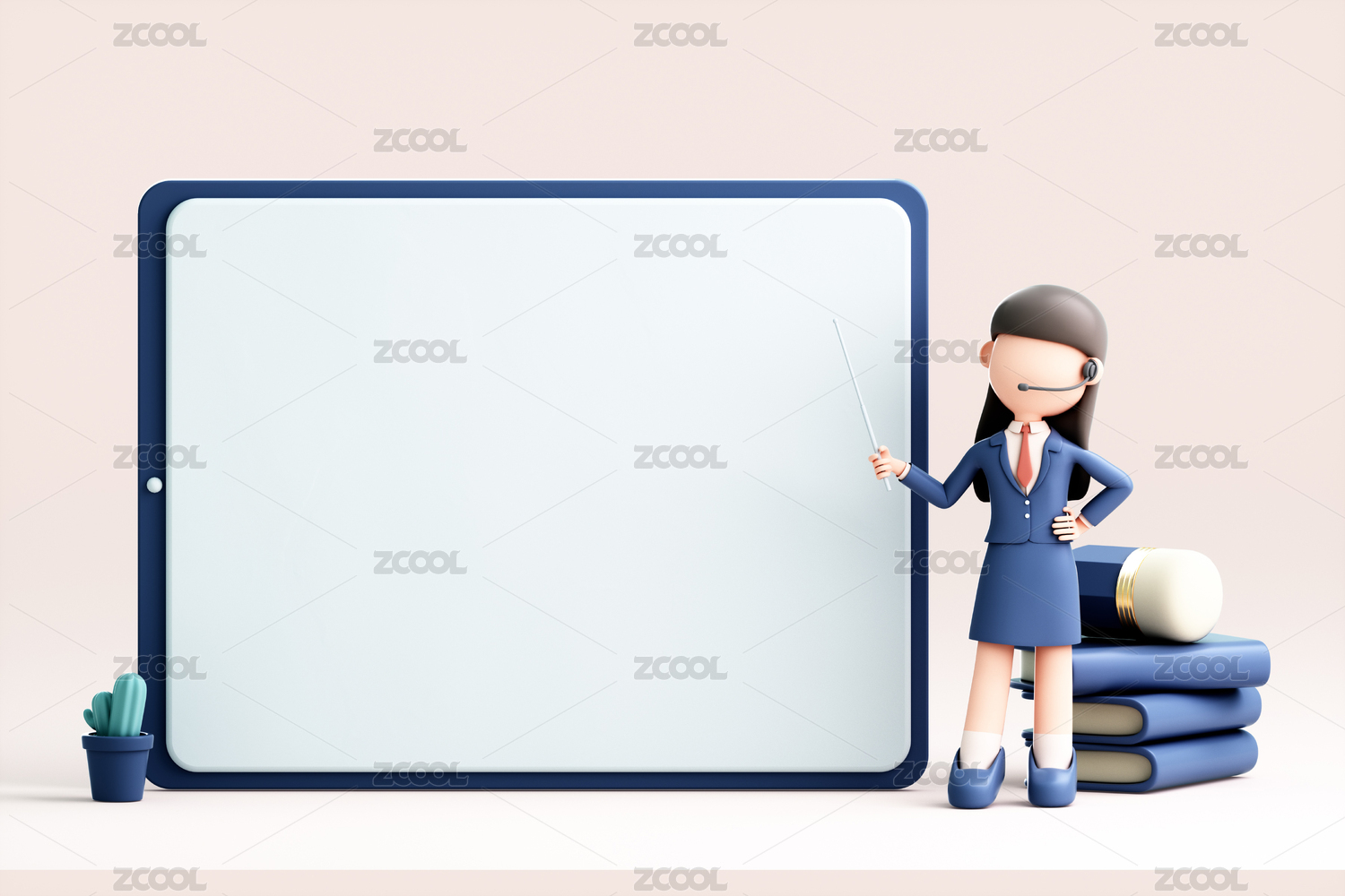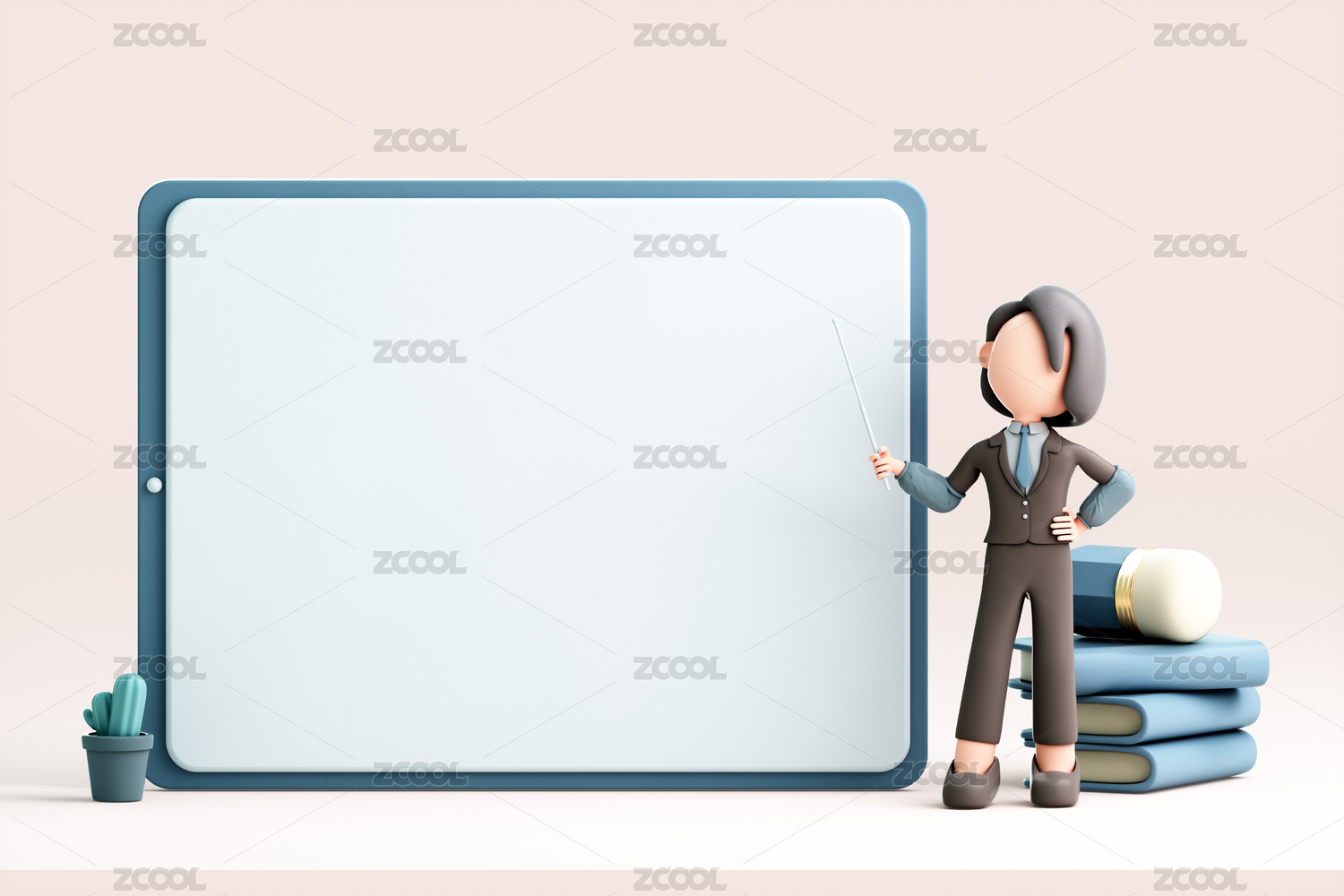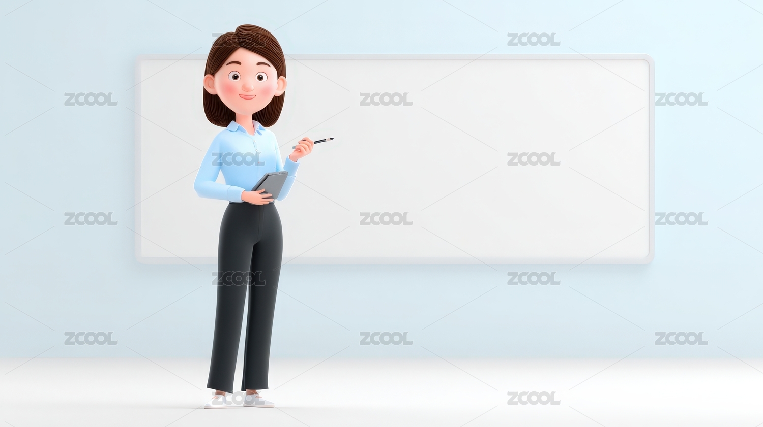 三维建模站在白板前的卡通女性