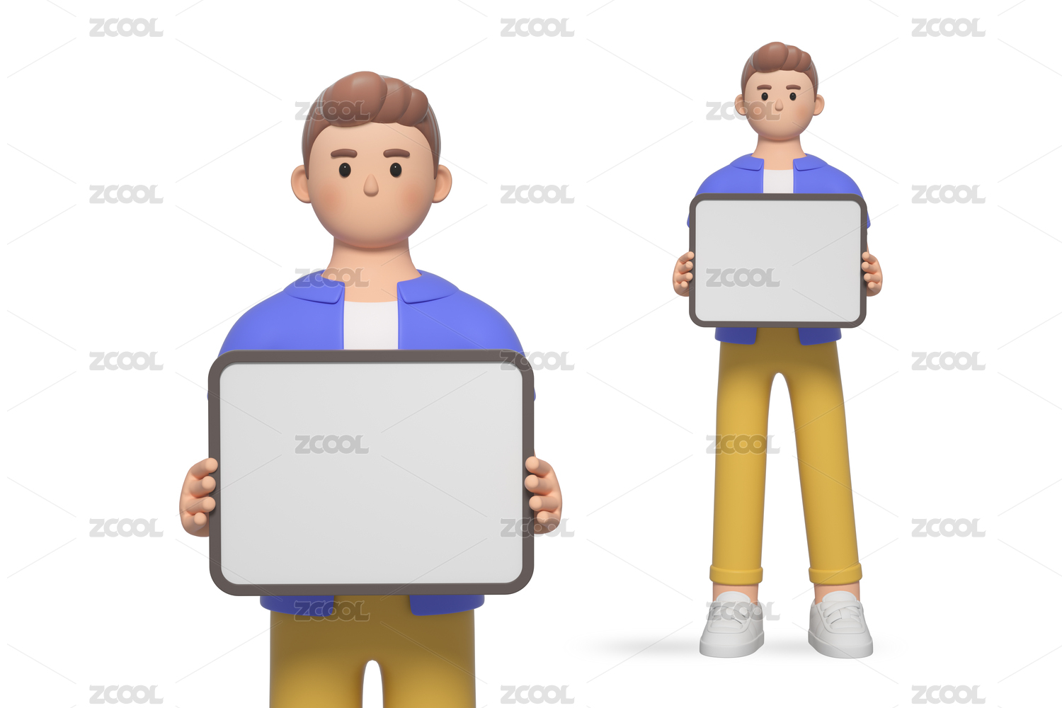 三维建模手拿白板的卡通男人