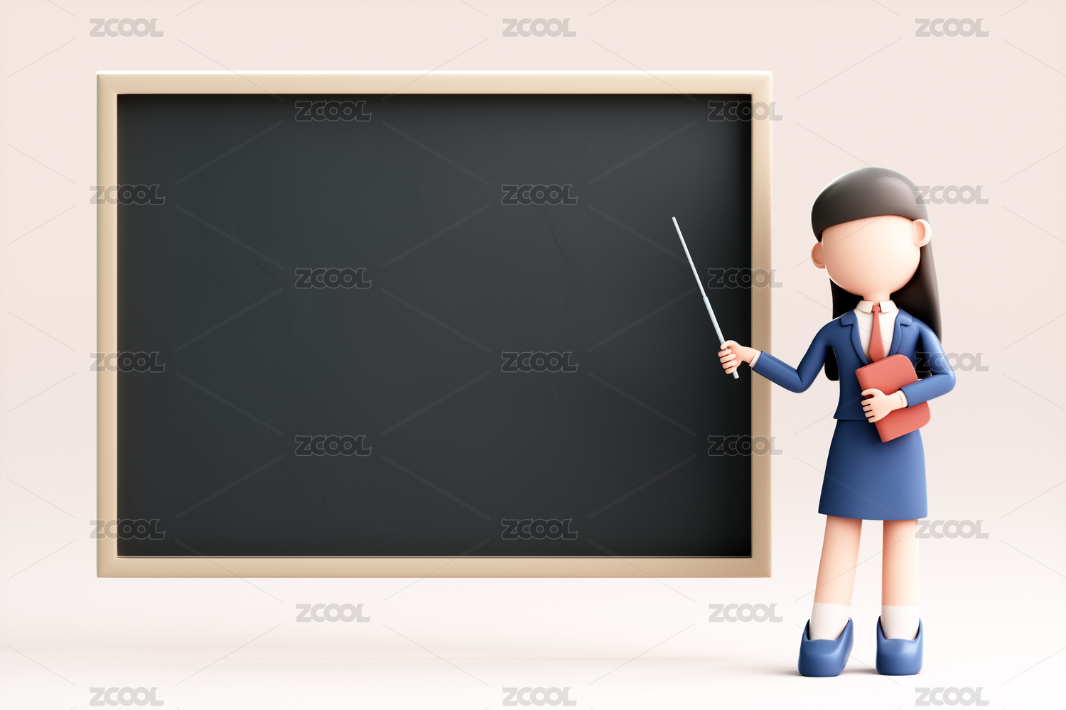 三维建模手持黑板的卡通女性
