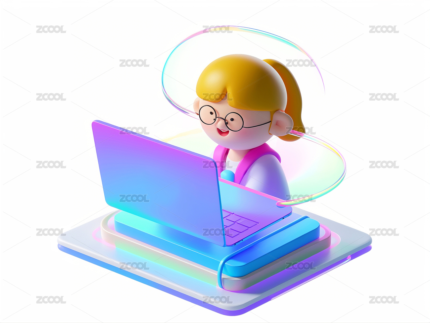 3D渲染的可爱卡通女孩