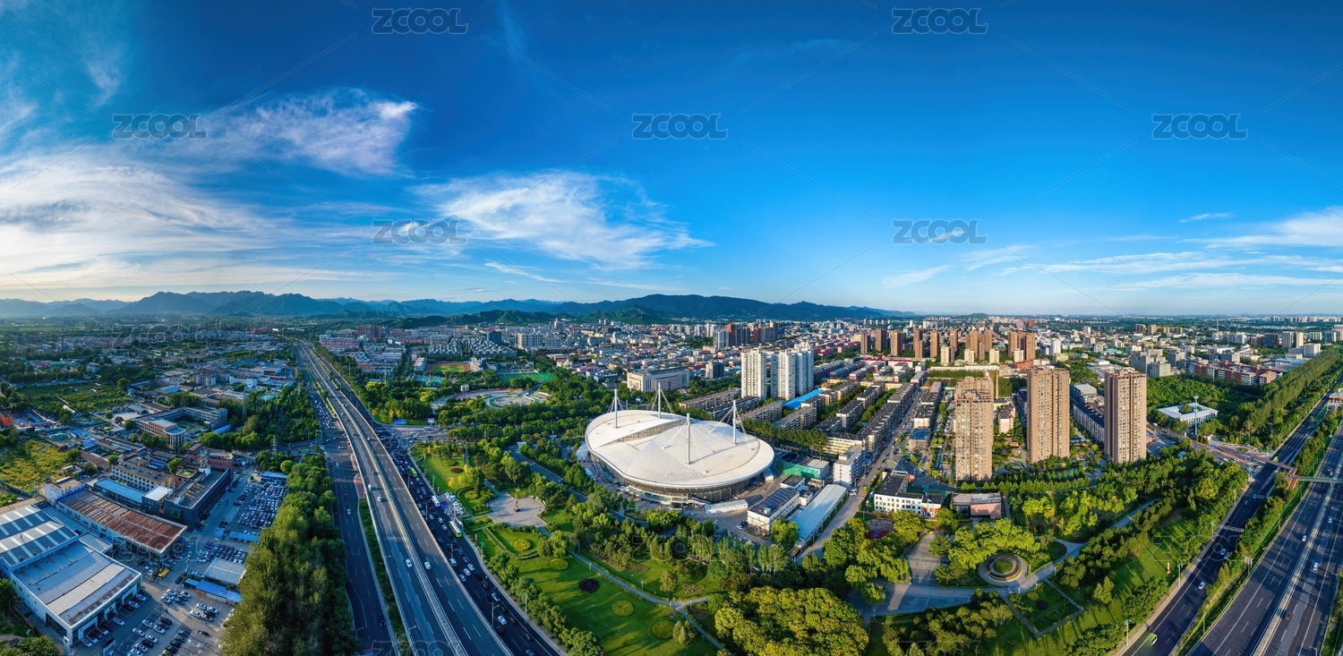航拍河北省石家庄市鹿泉区龙泉湖湿地