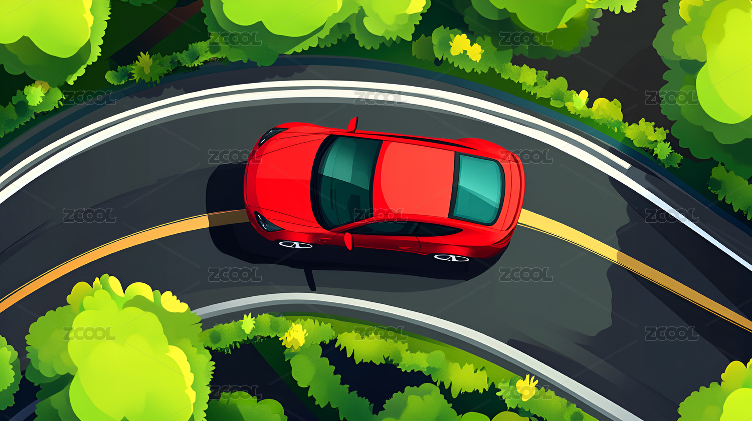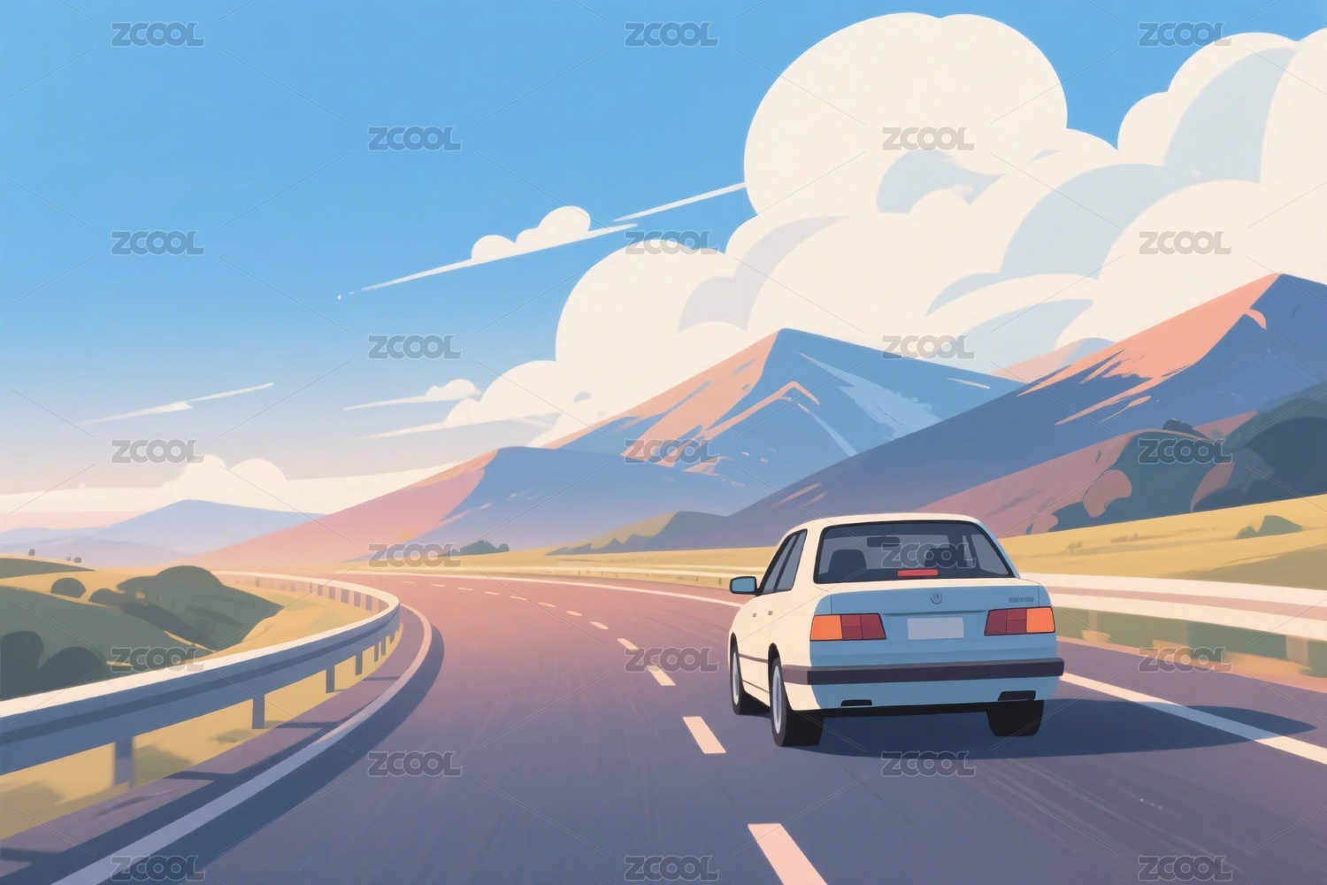 插画,创意,驾驶,汽车,旅程,车内,风景,卡通,道路,旅行