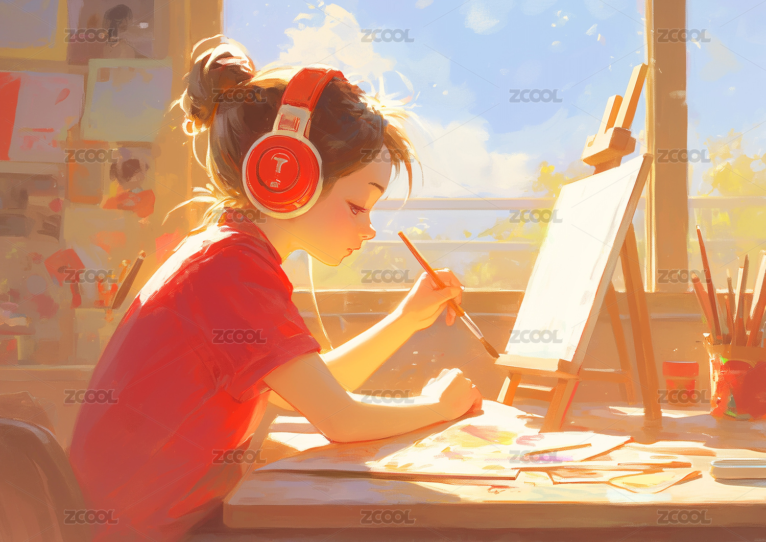创意,插画,艺术,卡通,儿童,梦想,温馨,红色,绘画,创作