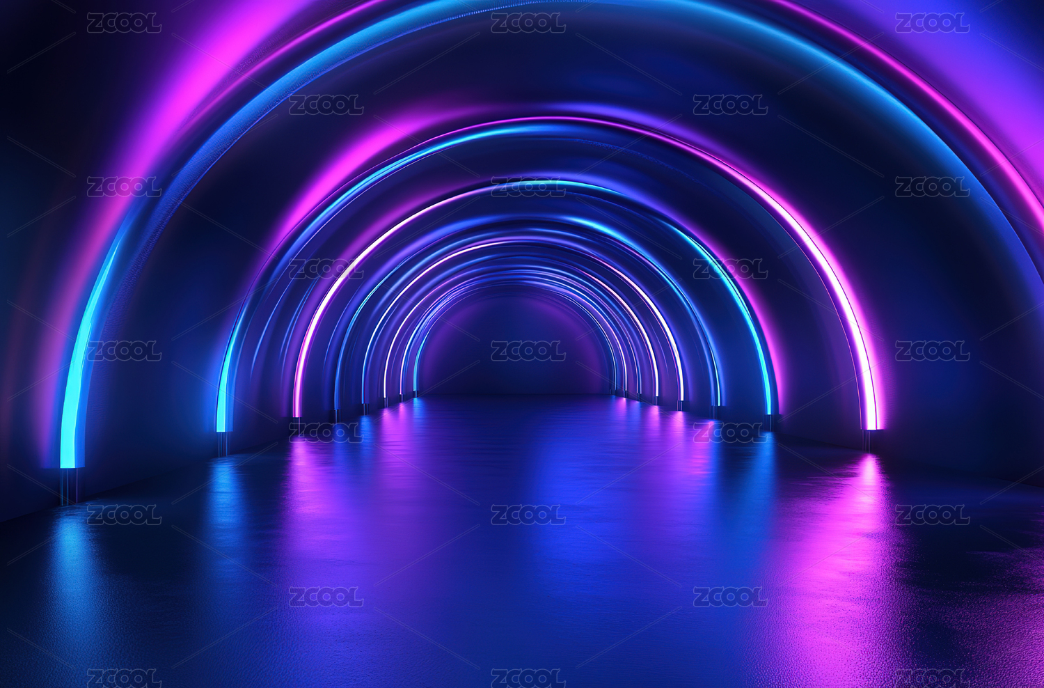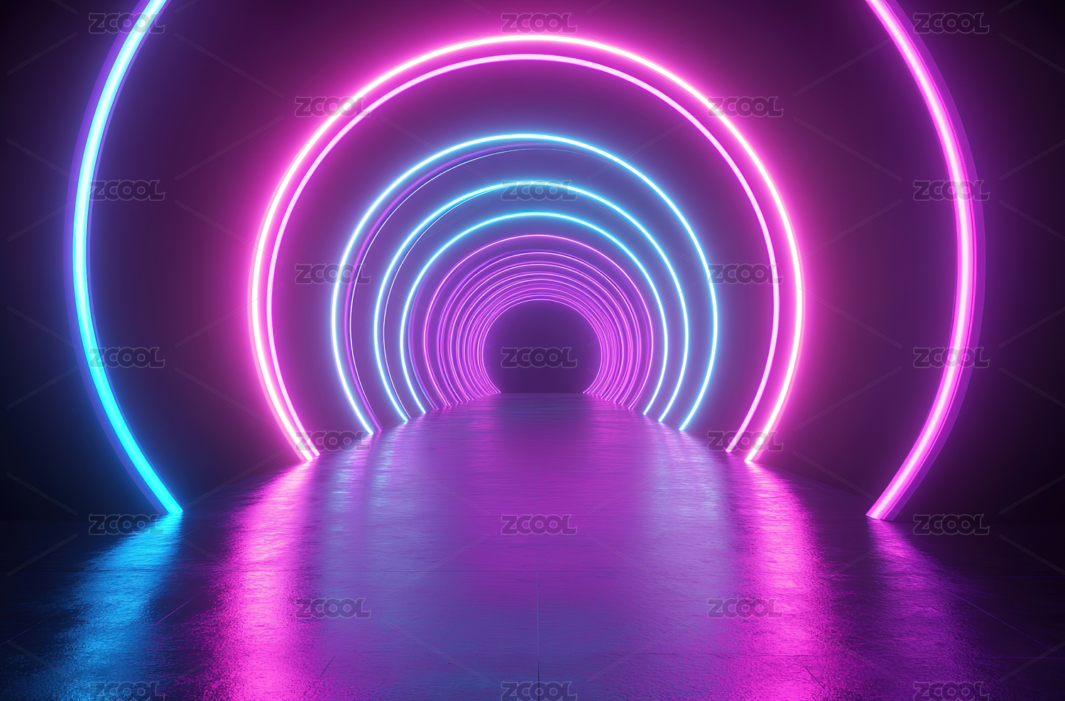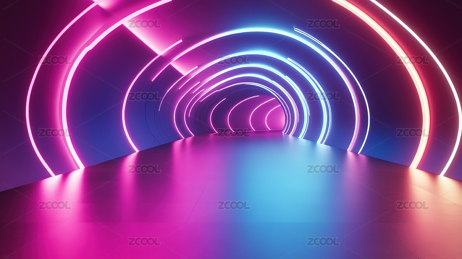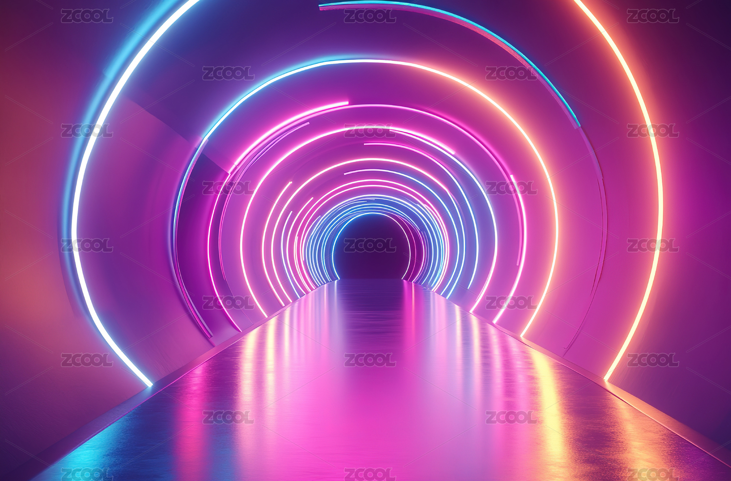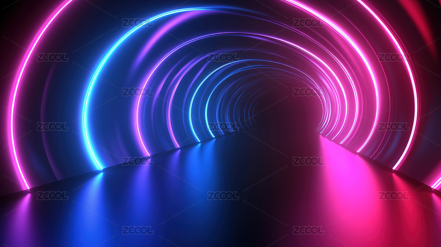 霓虹灯下的未来隧道