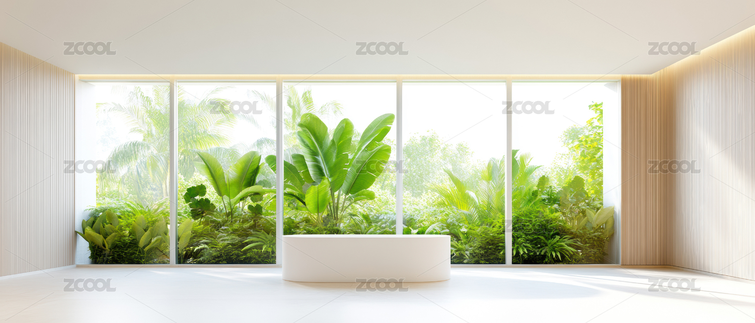 室内设计客厅沙发和窗外的绿色植物