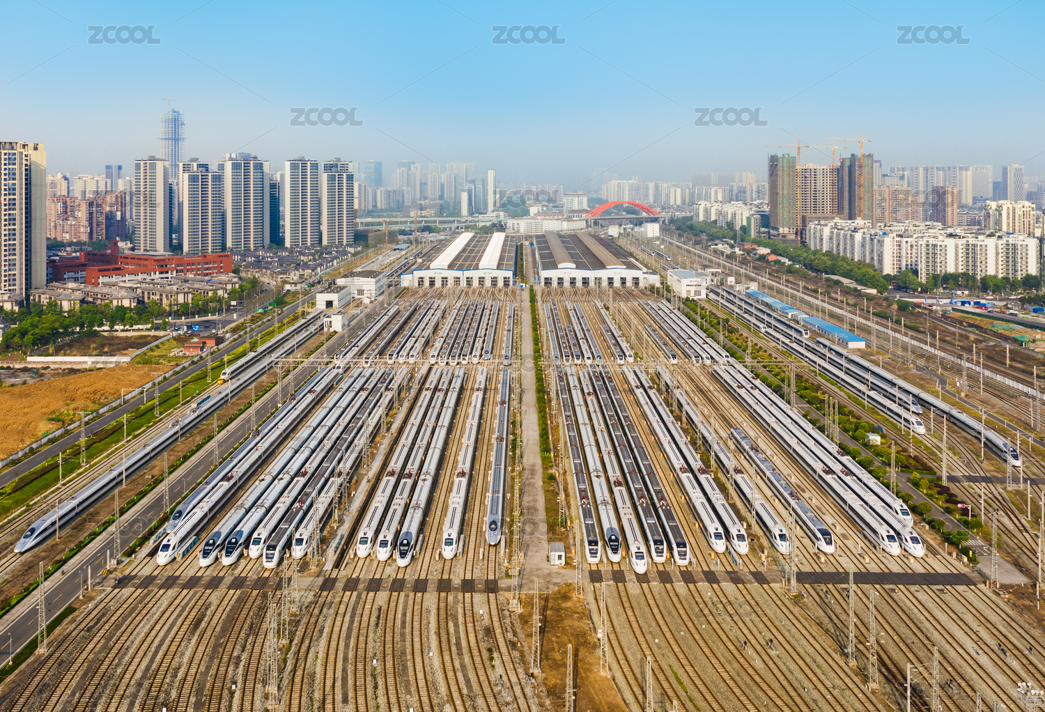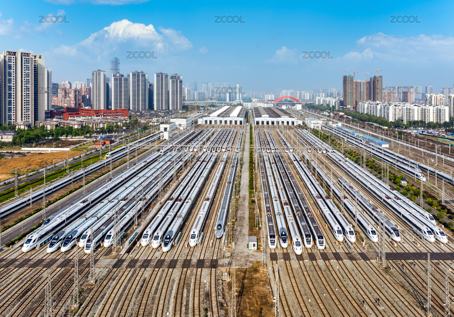 河南郑州白天郑州东站繁忙的铁路高铁运输场