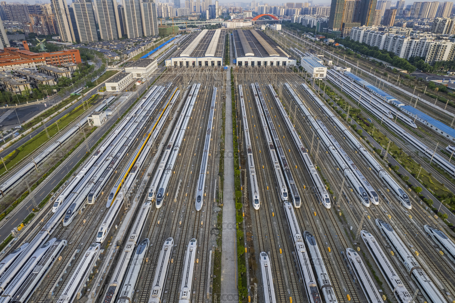 无人,运输,铁轨轨道,交通,航拍视角,高速列车,火车,火车站,交通方式,户外
