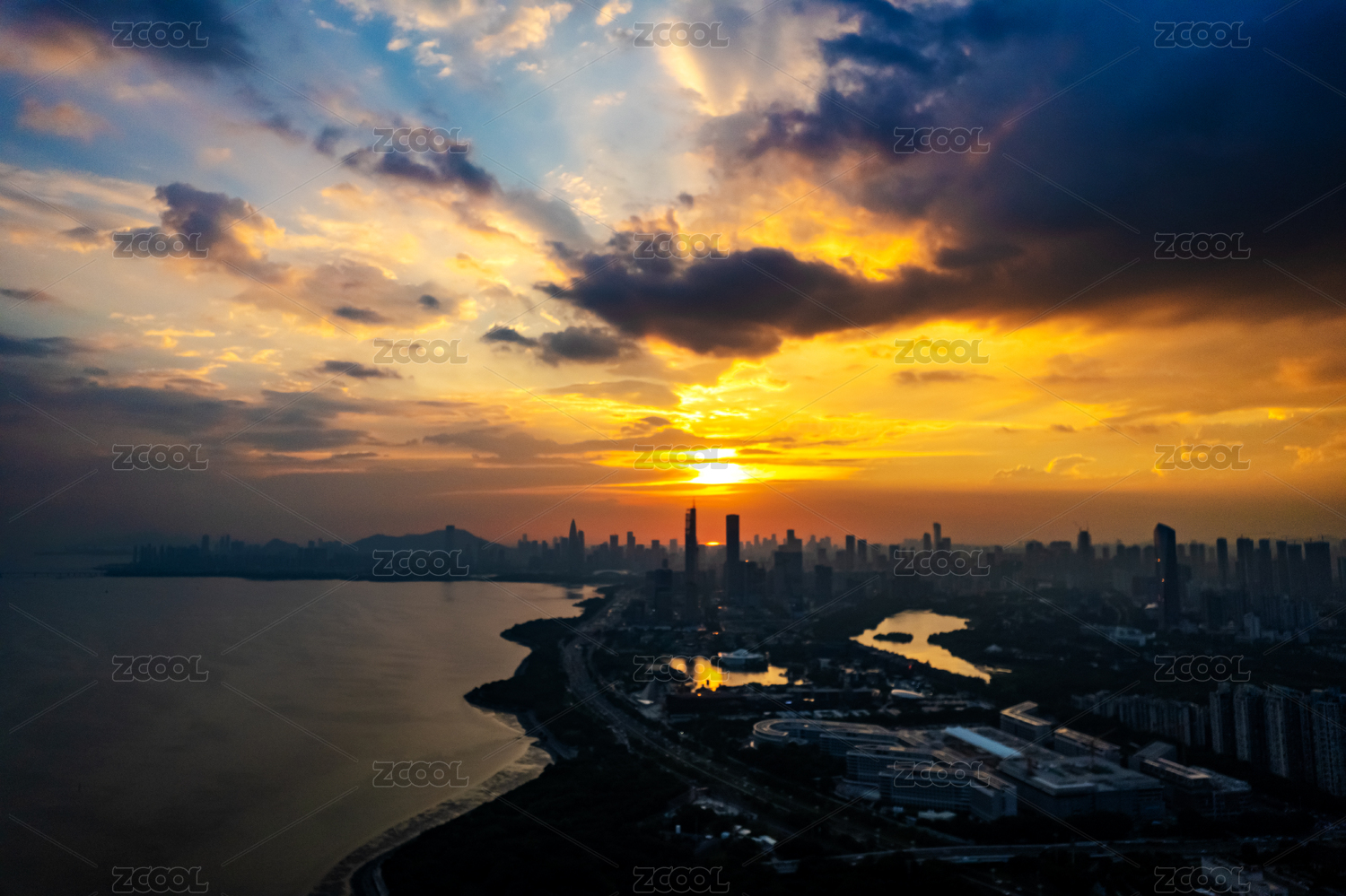 落日,晚霞,霞光,云景,城市,都市,天空,海洋,大海,滨海