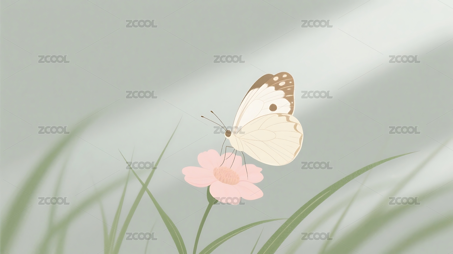 秋日白露蝴蝶落在青草尖上极简插画图