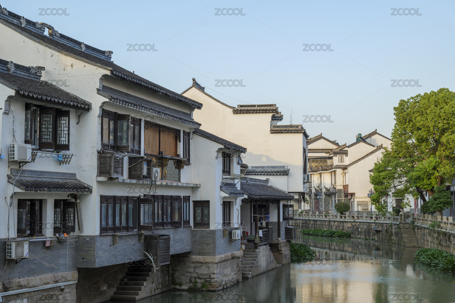 上海罗店古镇|阳光照亮河边的徽式复古建筑