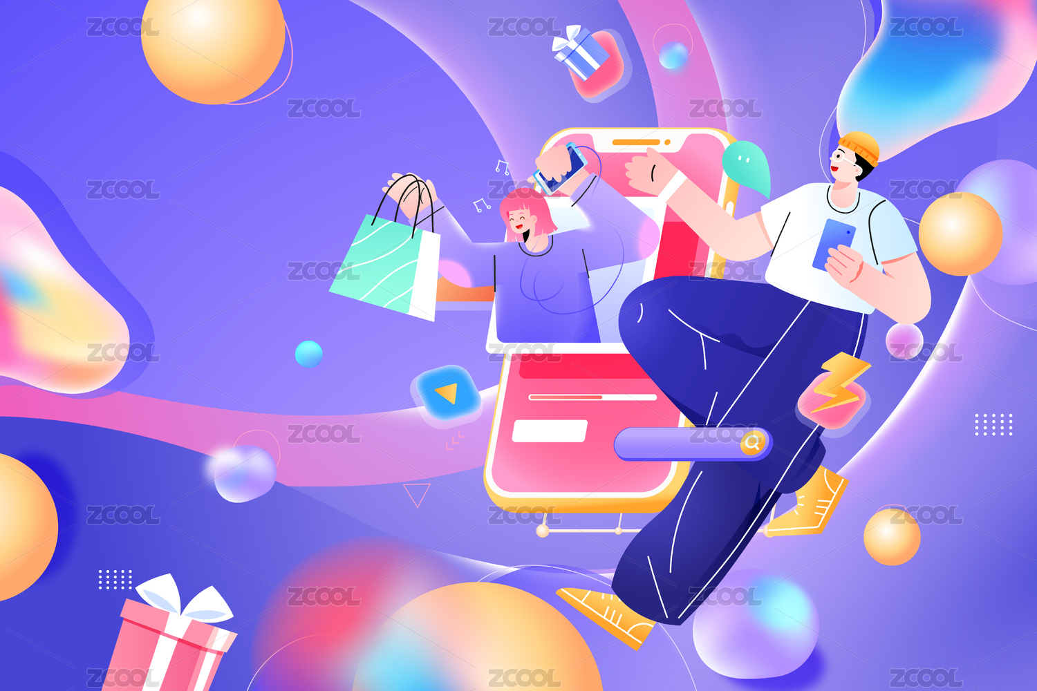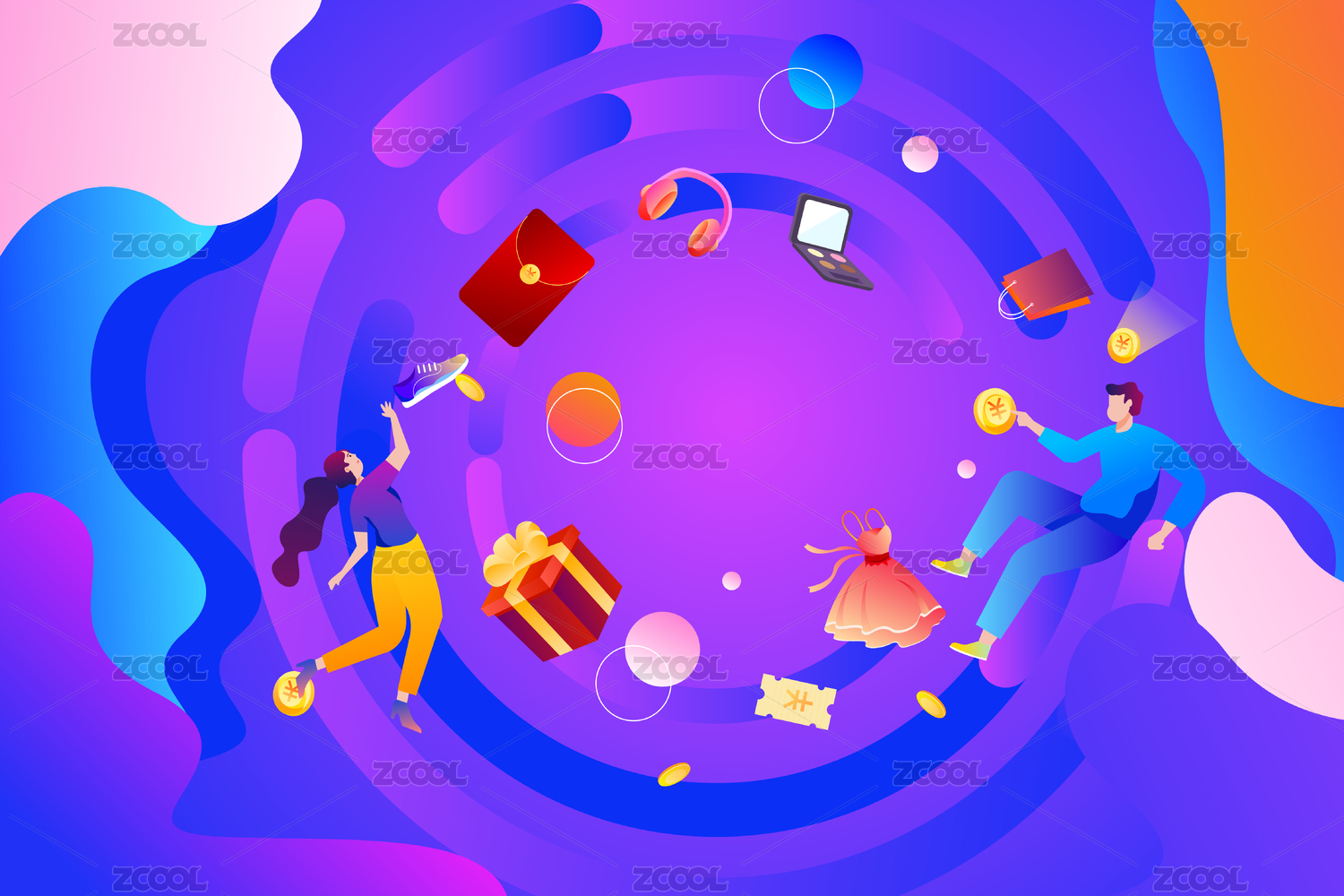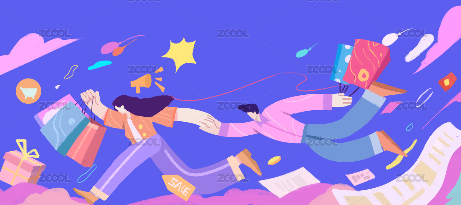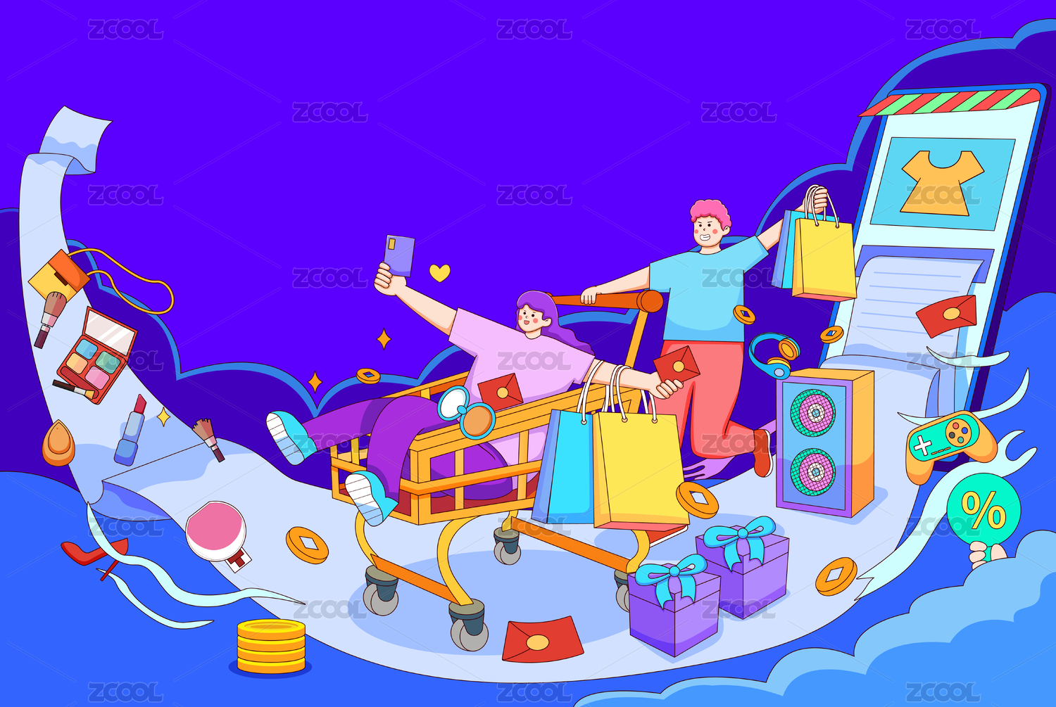 插画,人,商店,零售,消费,购物车,食品杂货,商品,女人,金融