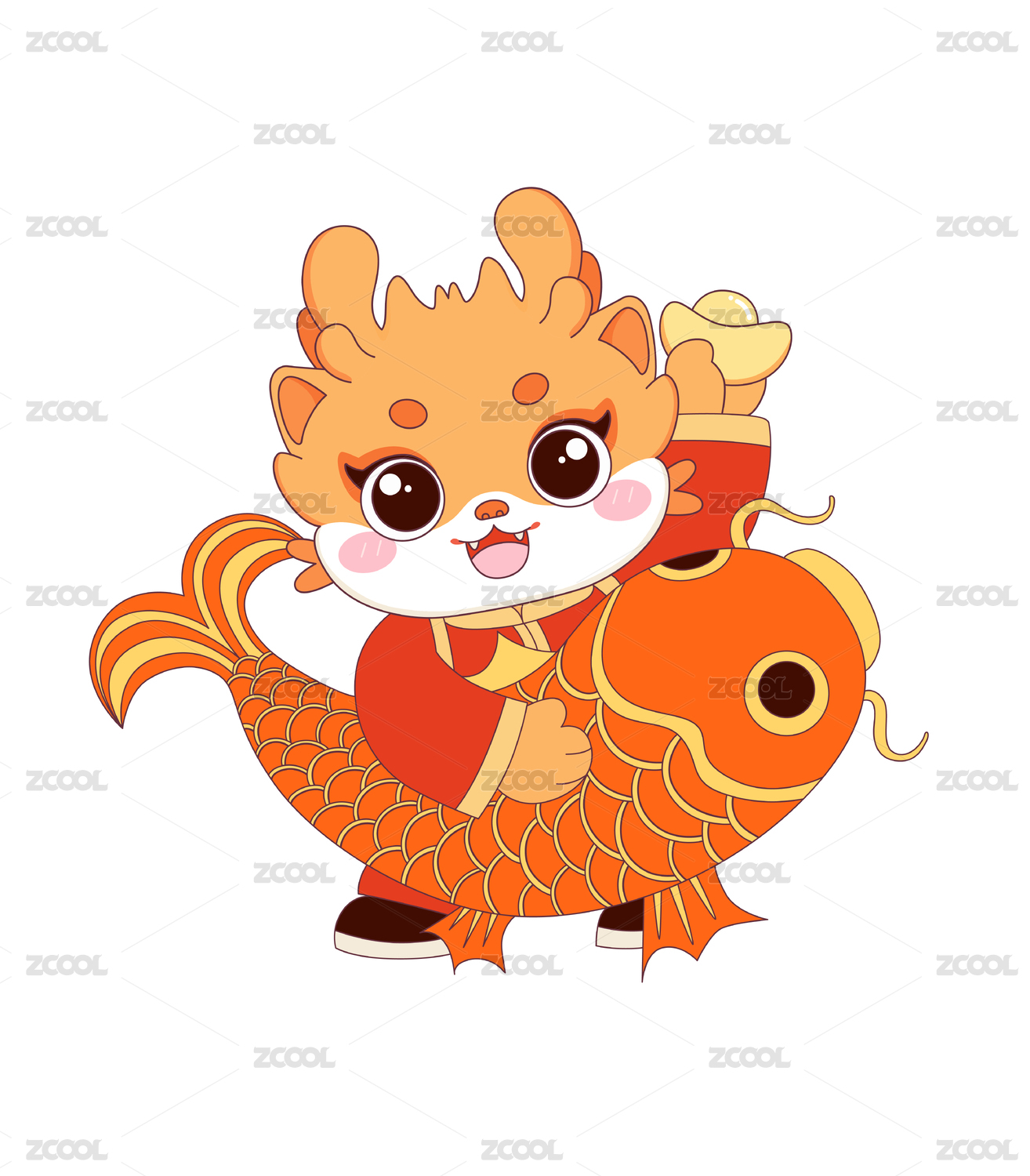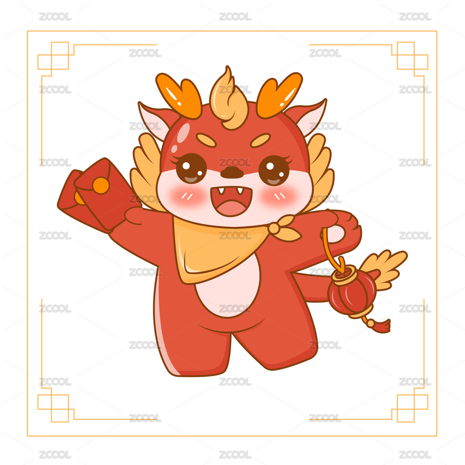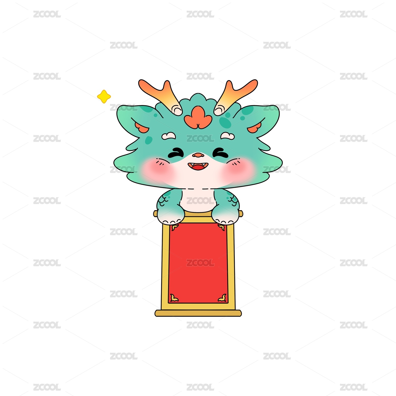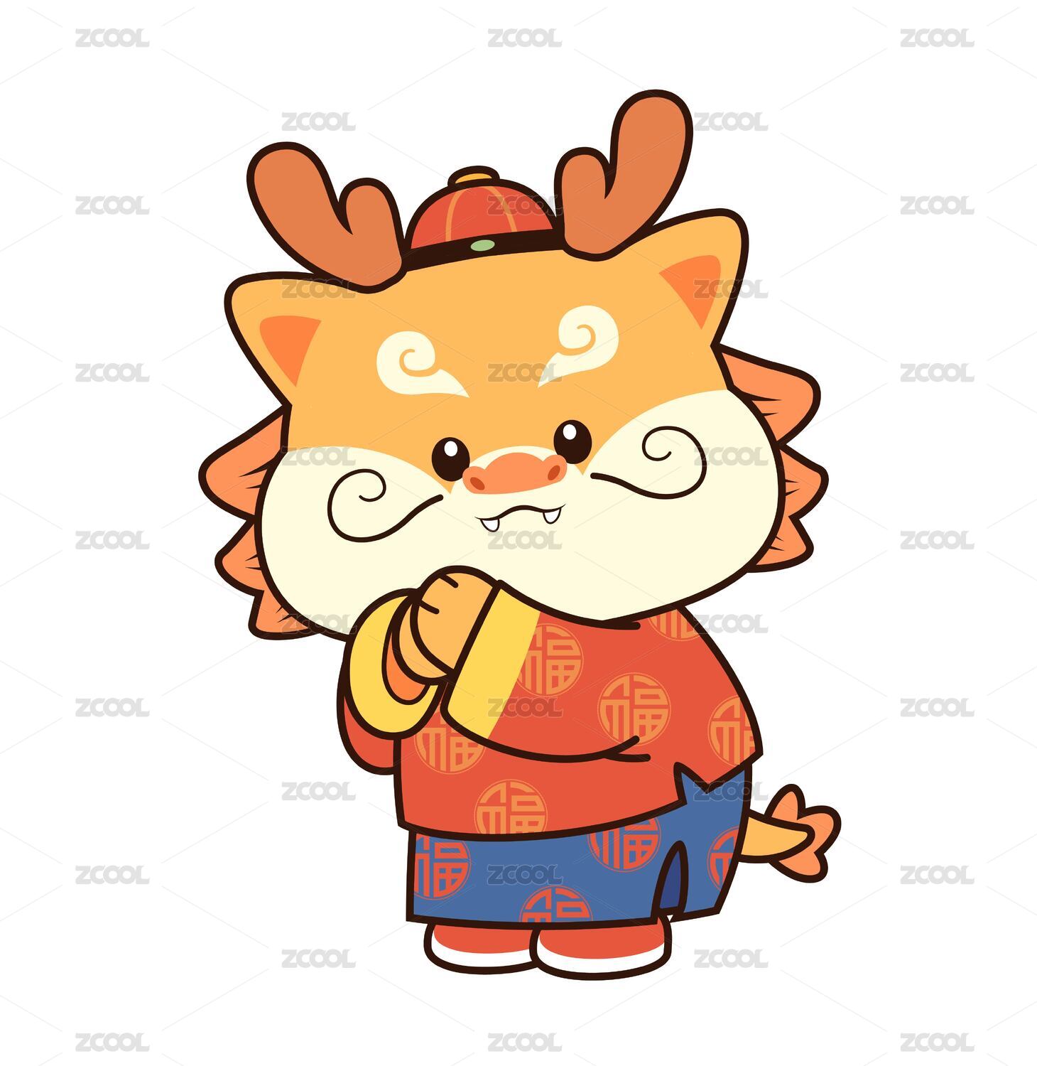 青旅色q版可爱穿唐装可爱拟人小青龙