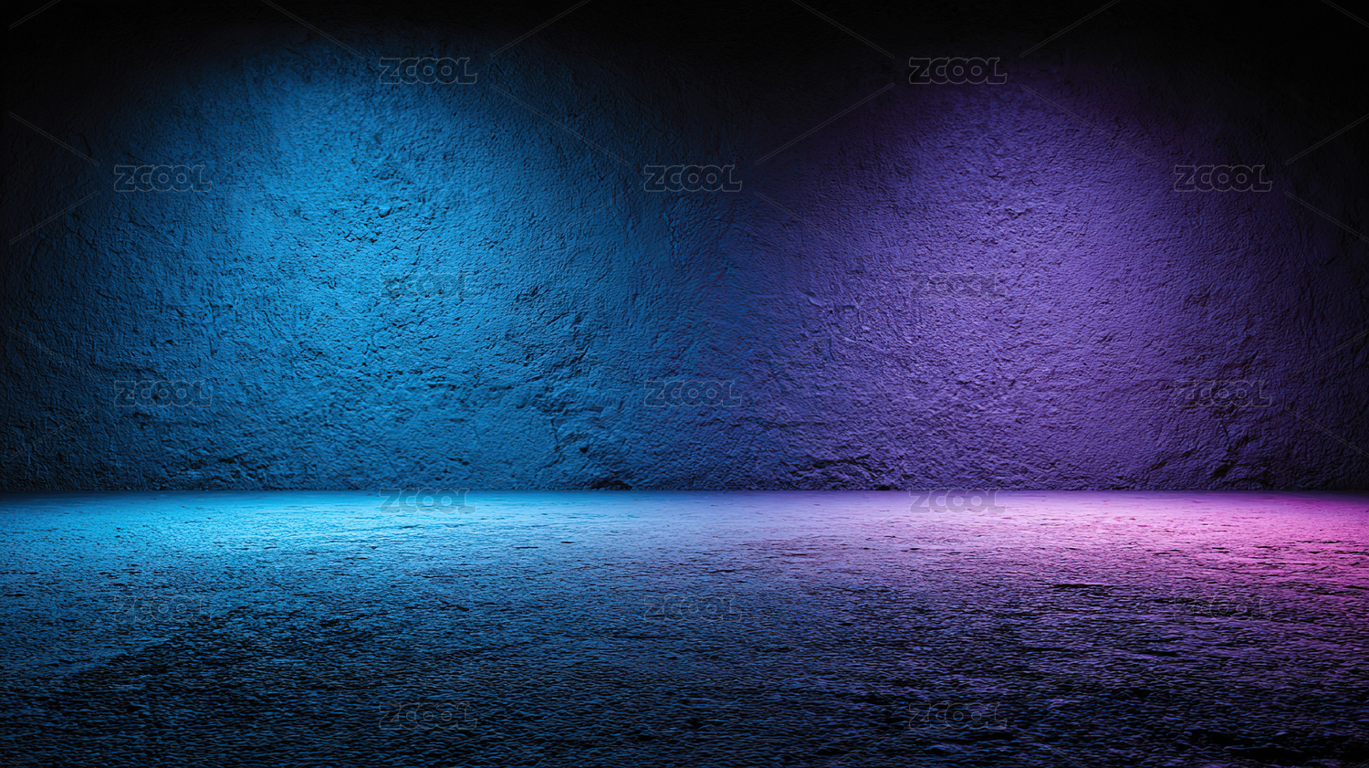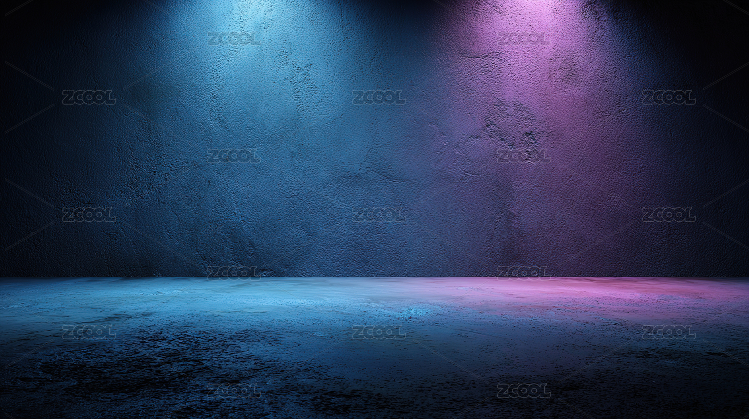 暗黑蓝紫色混凝土墙与地面建筑空间。