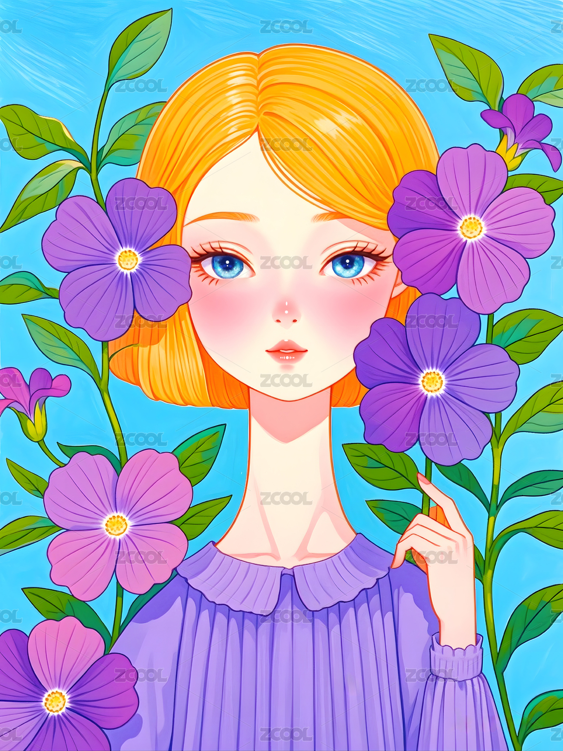 花丛中的美女插画