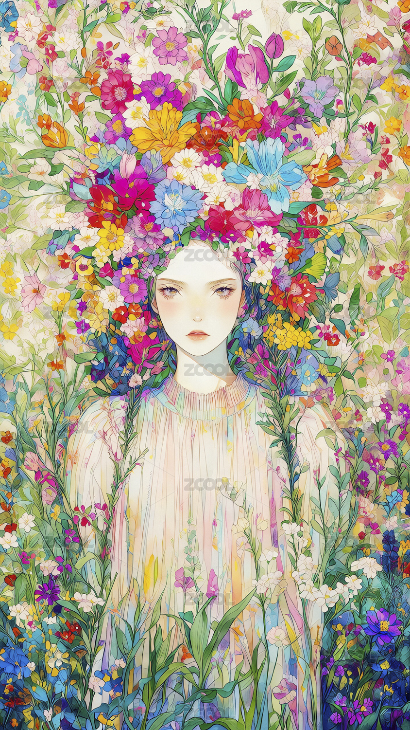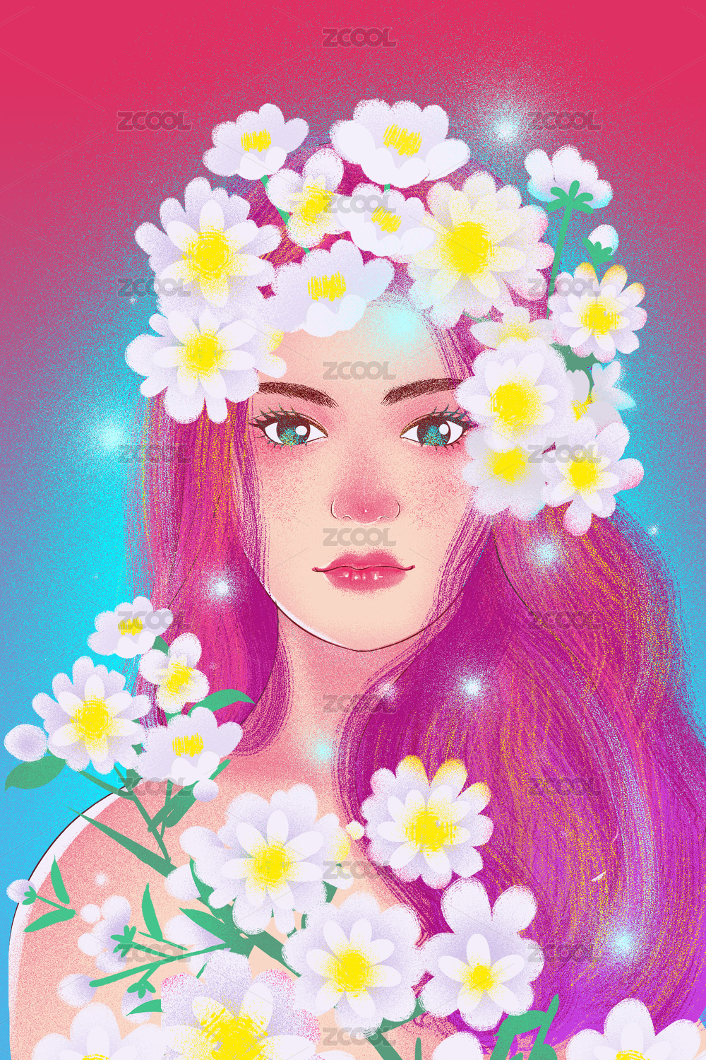 壁纸,海报,插画,女人,少女,肖像,彩色,斑斓的,多彩,花