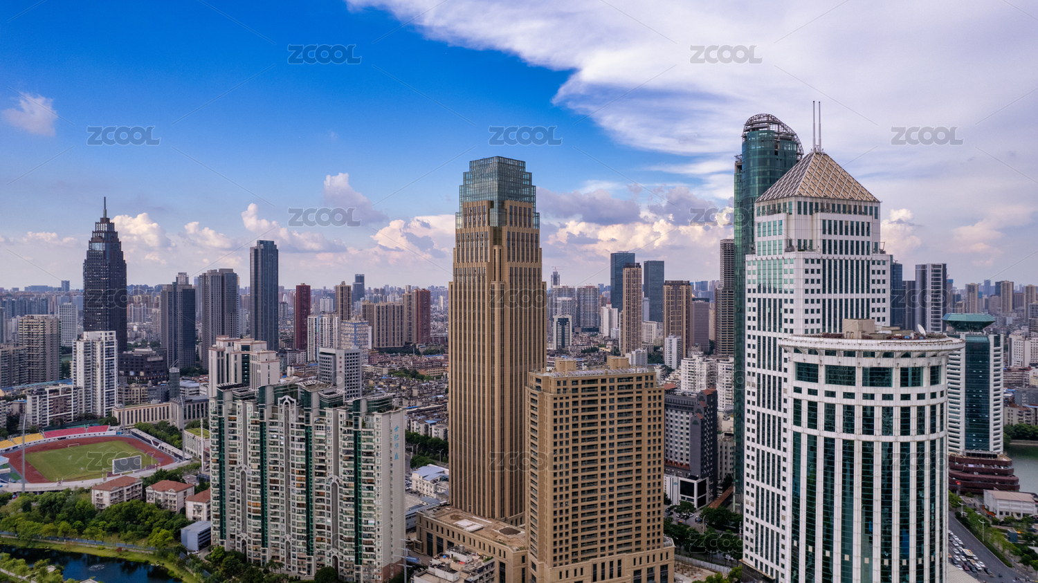 江苏无锡市城市地标建筑市中心蓝天白云风光