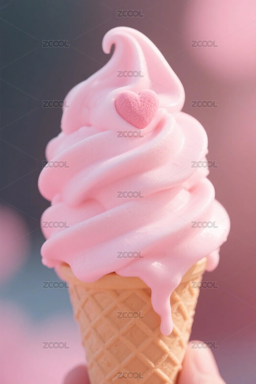 粉色爱心冰淇淋甜筒