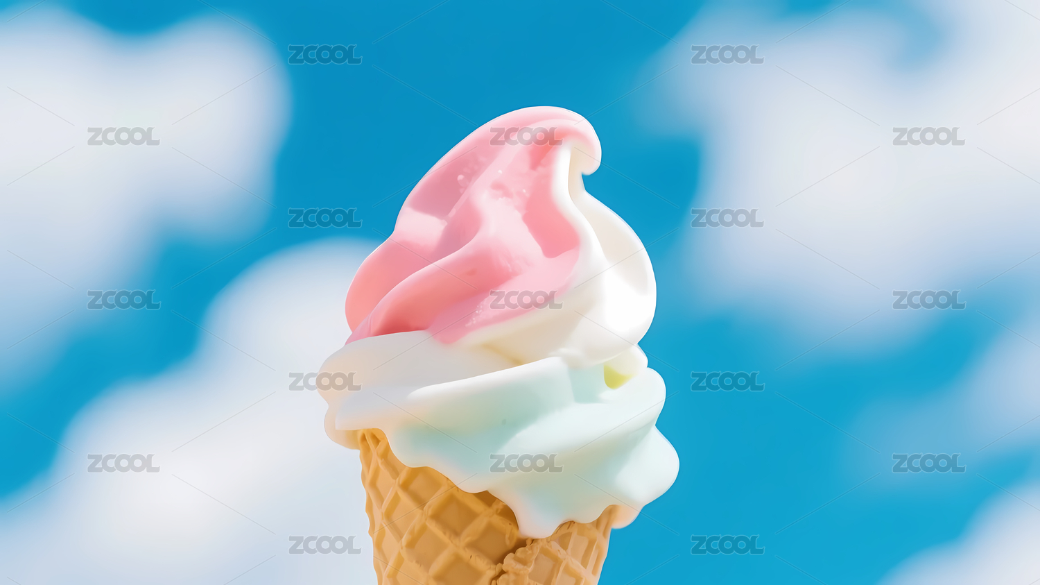 三色渐变蓝天冰淇淋