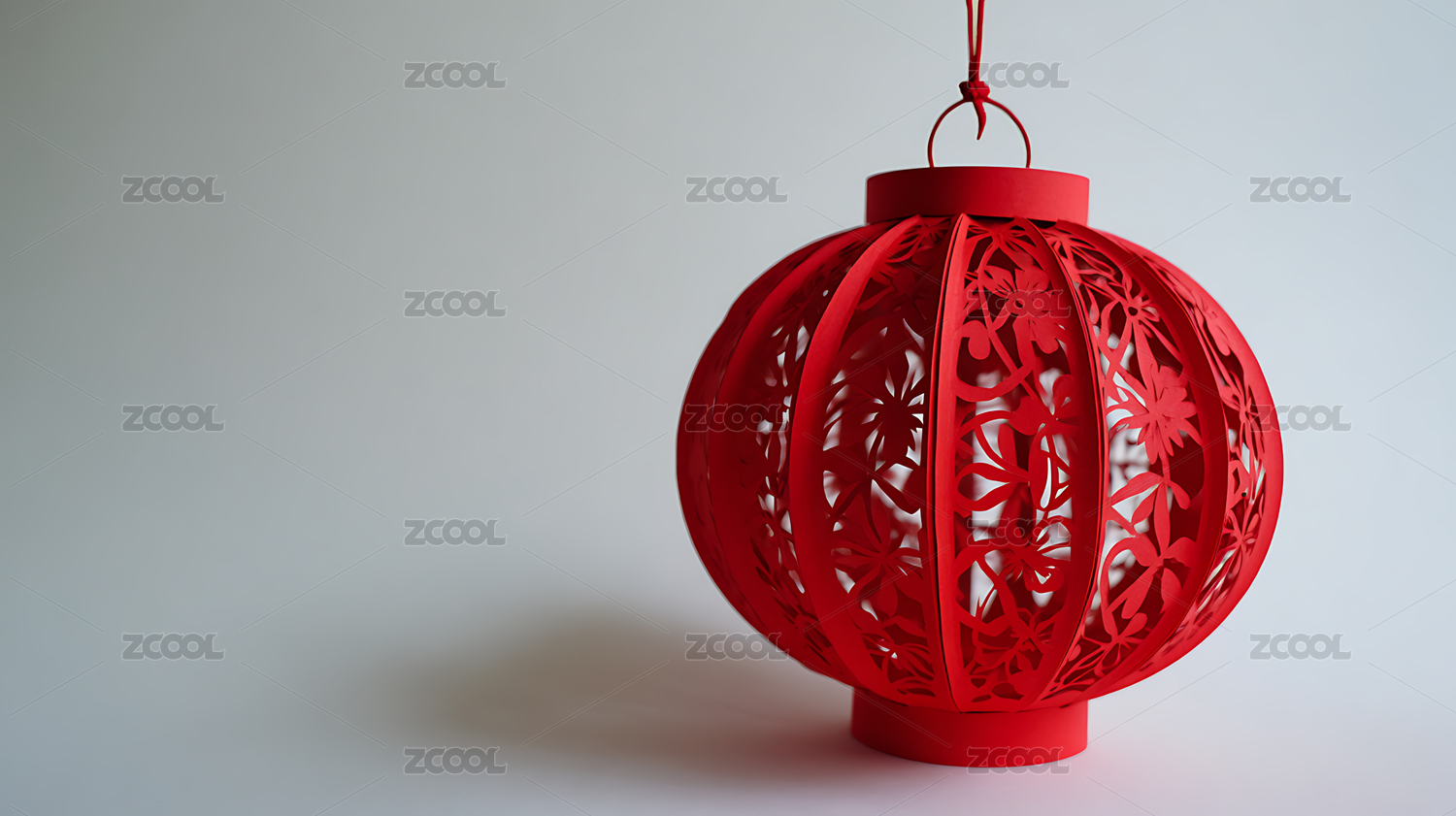 红色绳子上挂着一盏红白相间的灯笼高清图片