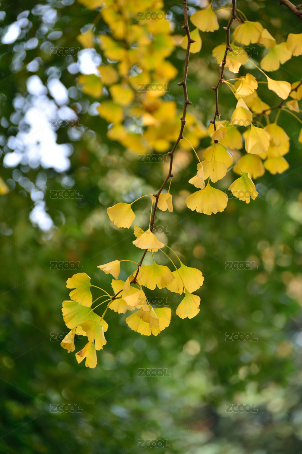 深秋的银杏树金黄色的银杏叶