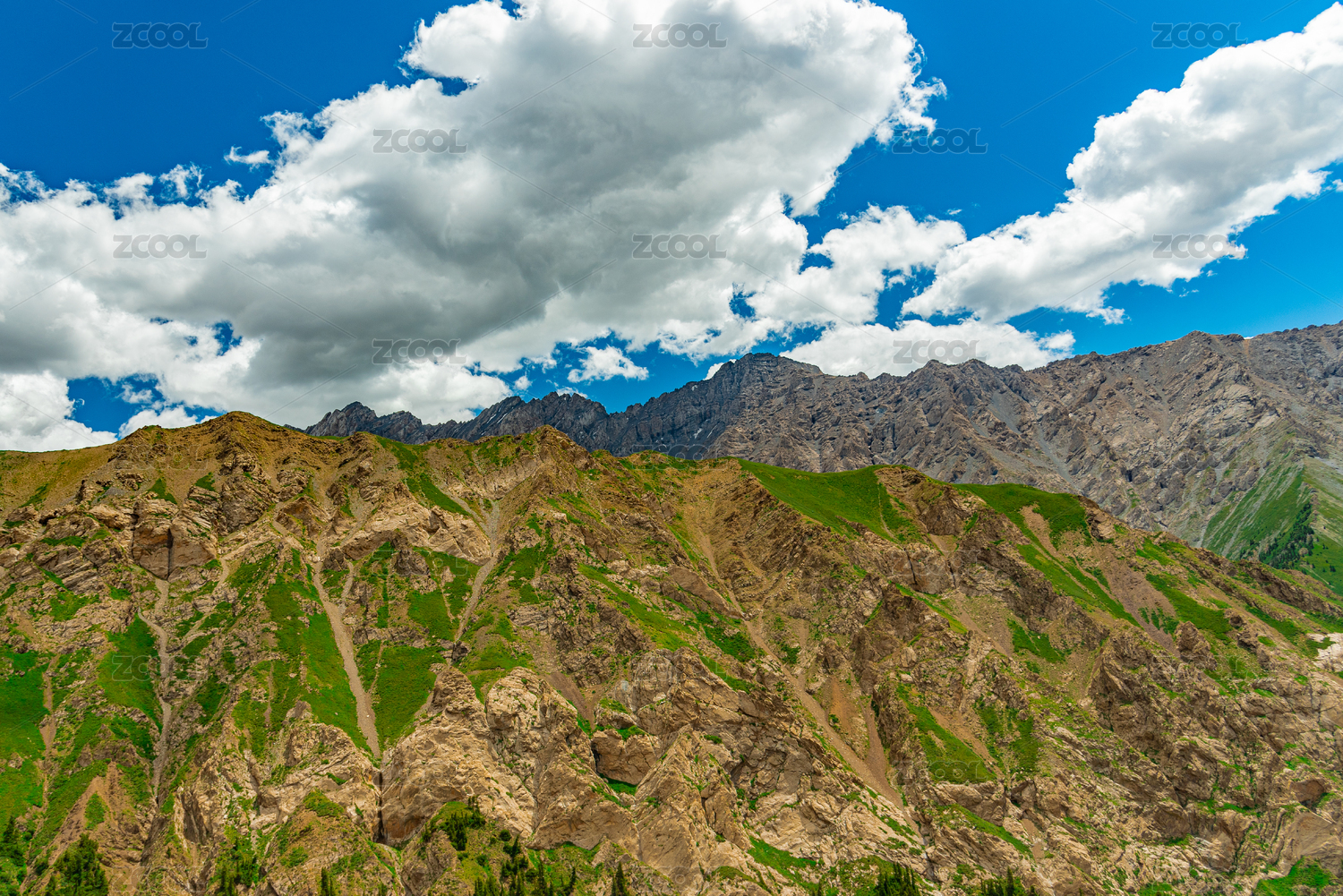 晴天气下中国新疆伊犁昭苏伊昭公路群山风景