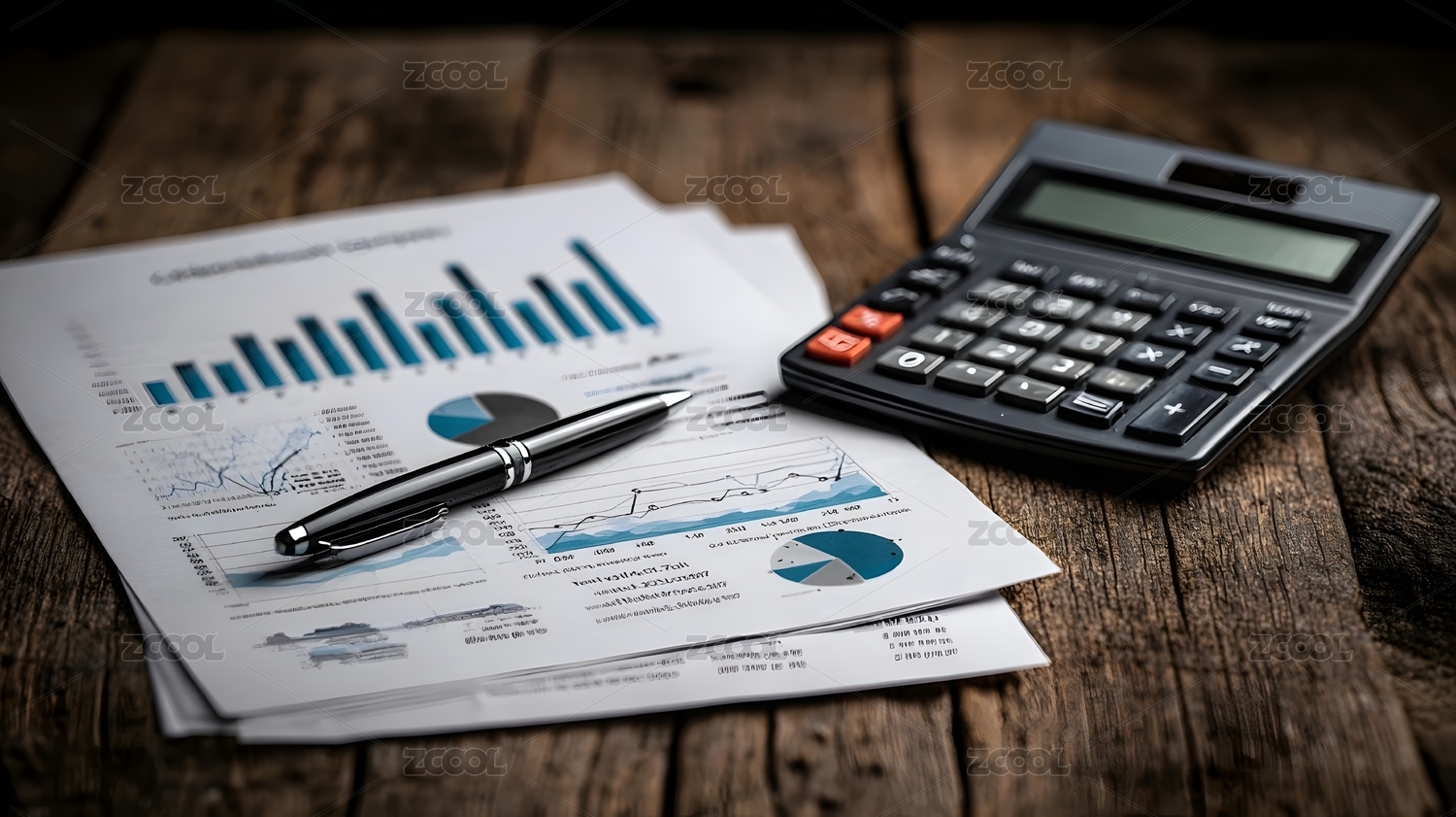 办公桌上的金融资料和计算器