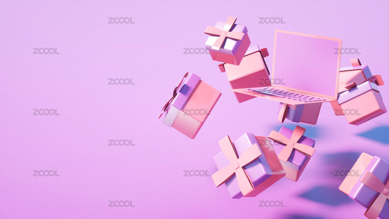 商业,电脑,礼盒,礼物,网购,概念,场景,抽象,笔记本,很多