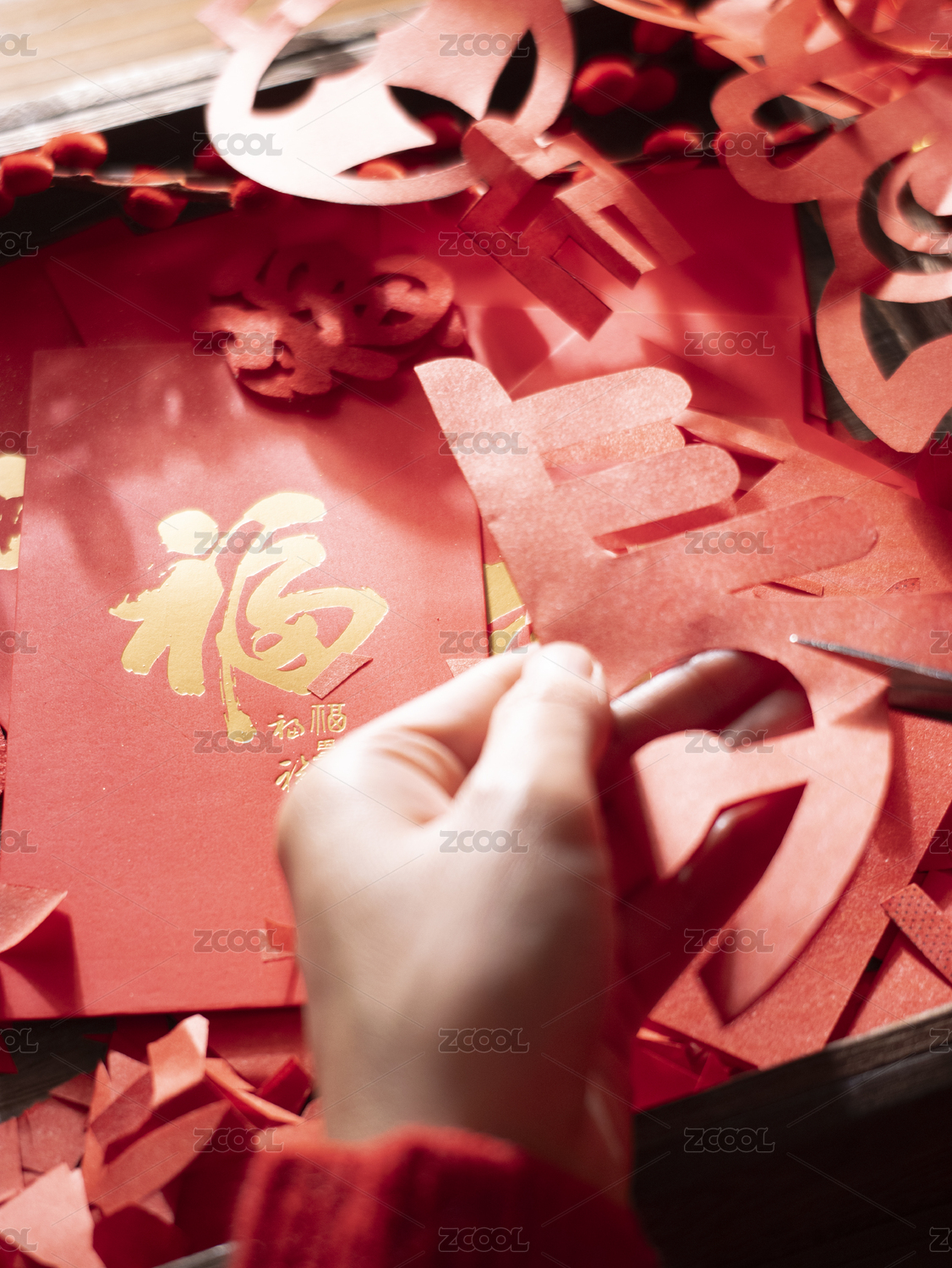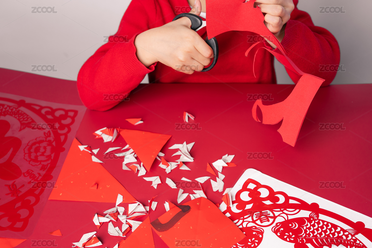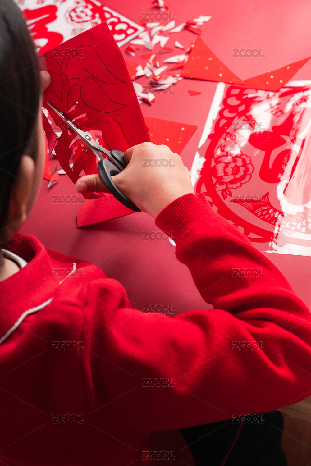 春节剪纸剪窗花红纸