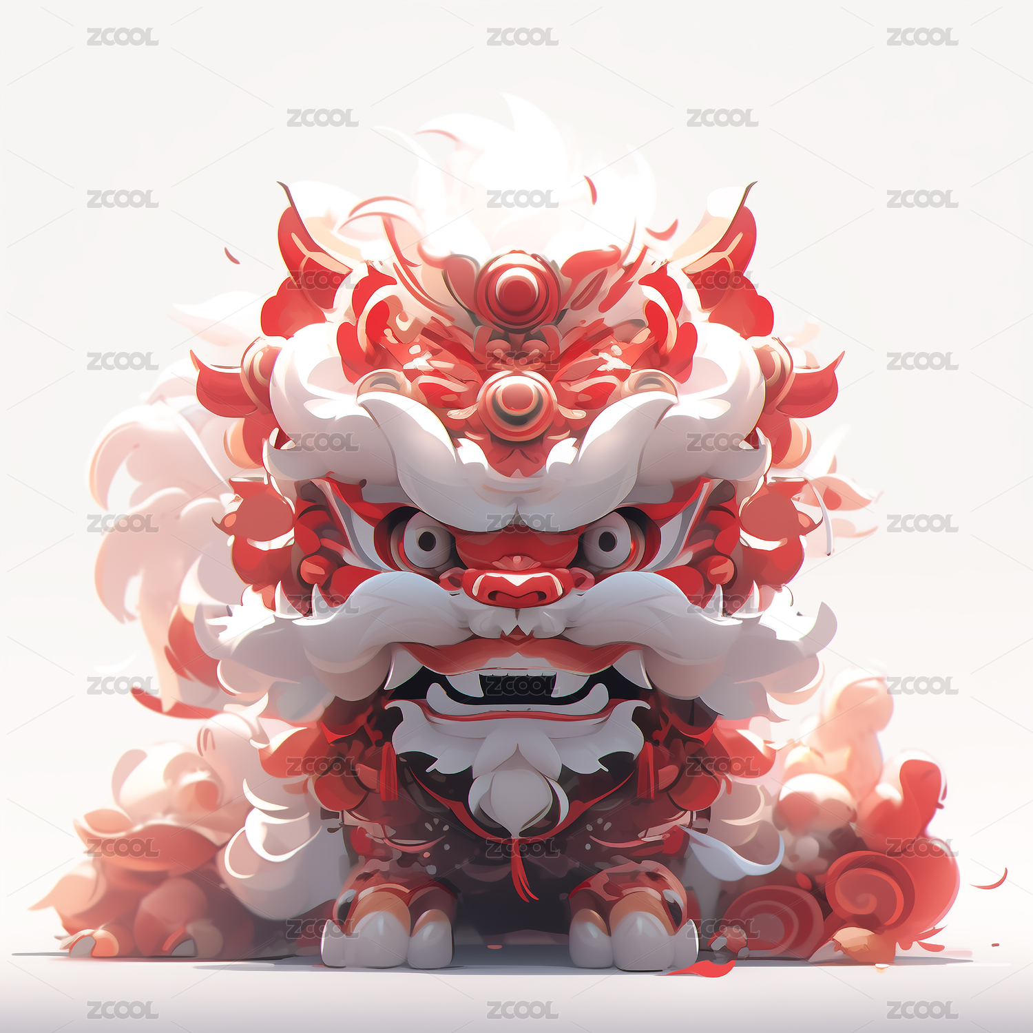 扁平化新年国潮风格醒狮喜庆氛围插画