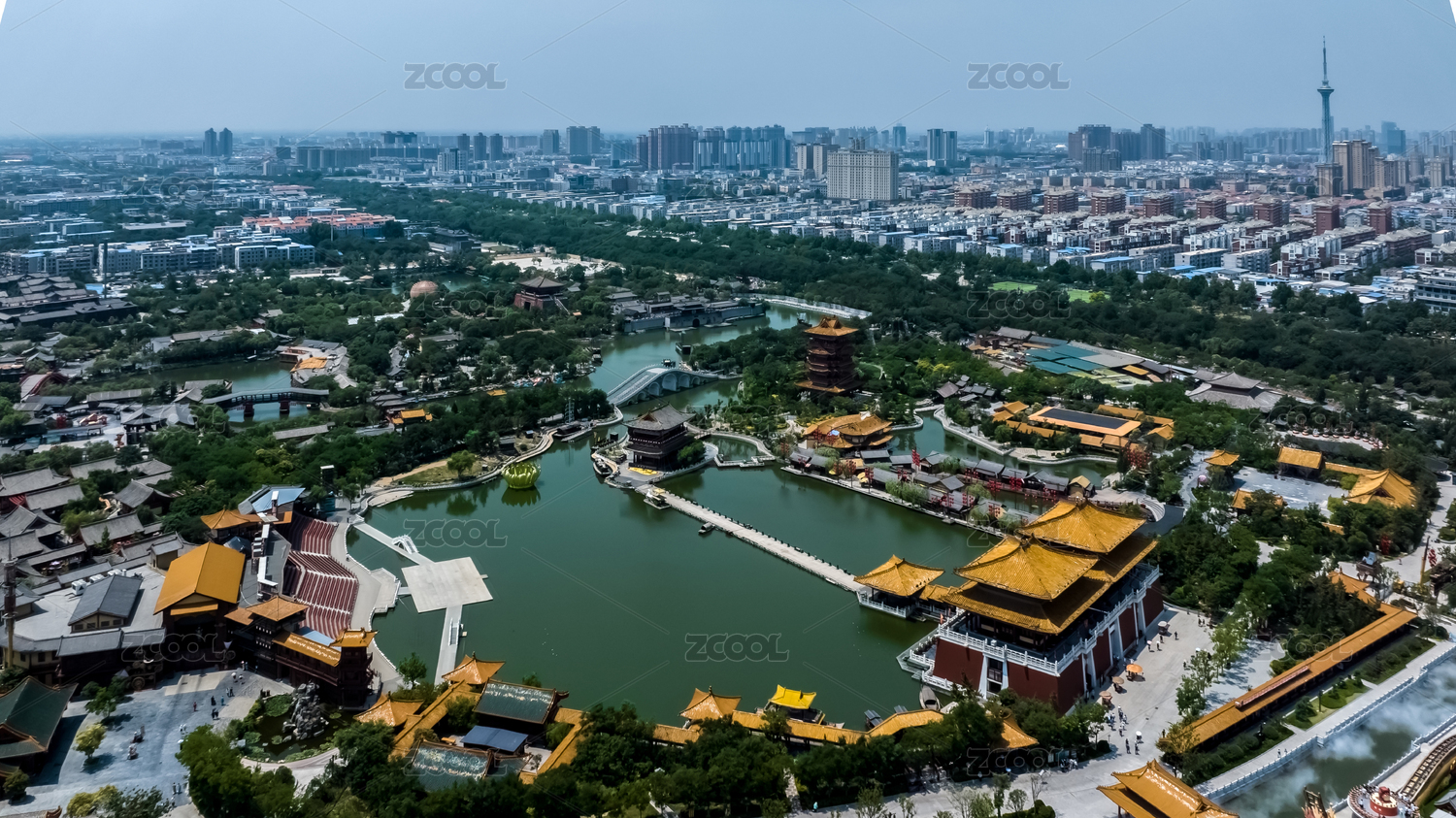 洛阳城市旅行隋唐洛阳城九州池景区夜景航拍