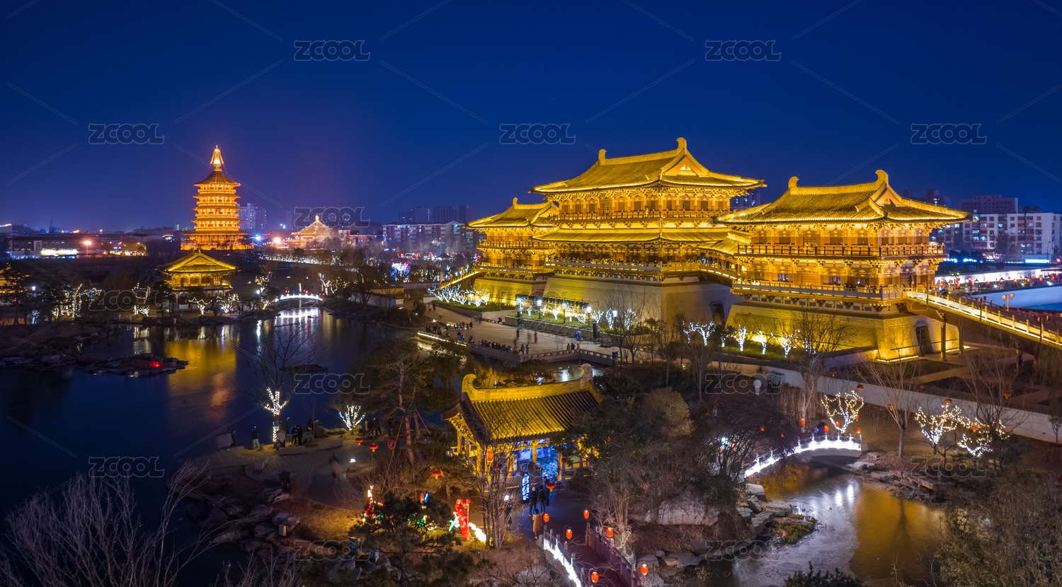 河南洛阳隋唐洛阳城九州池天堂夜景