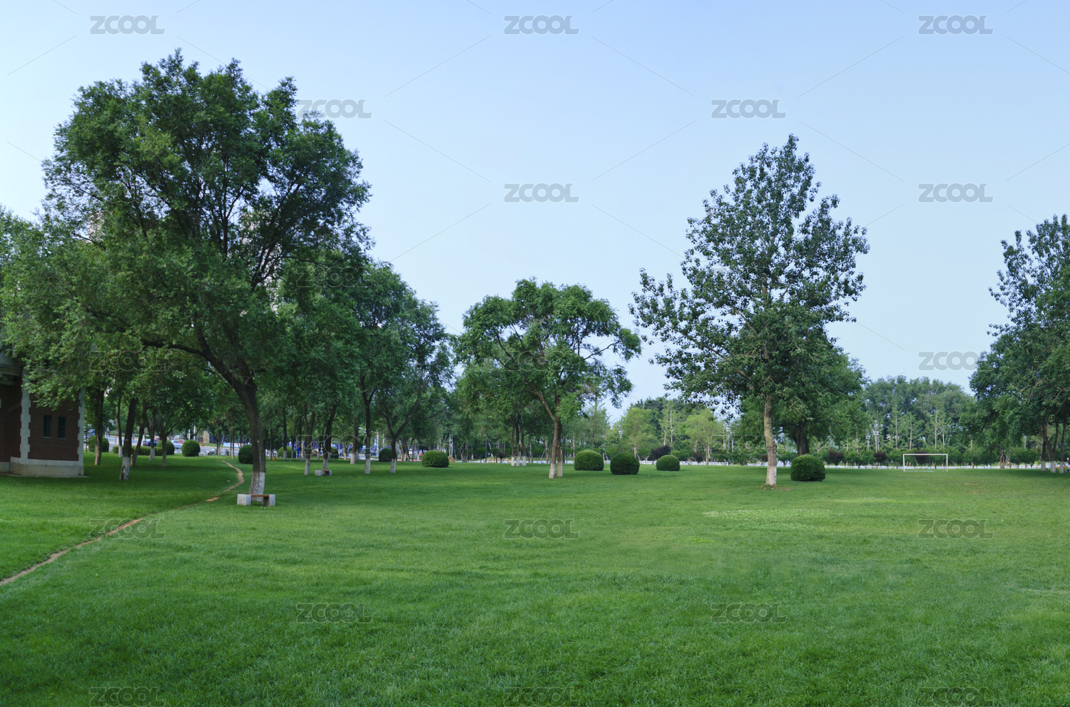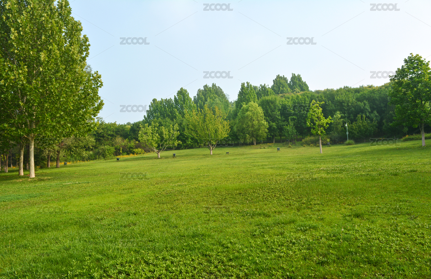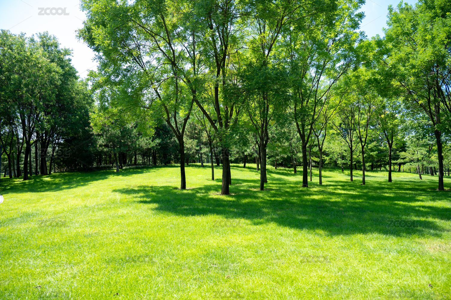 中国北京奥林匹克森林公园草坪绿树蓝天美景