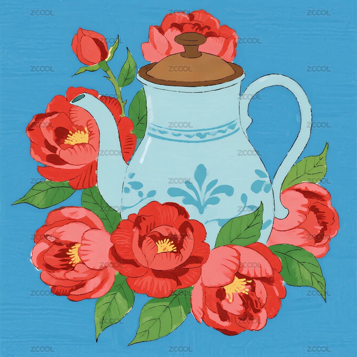 扁平茶壶插画