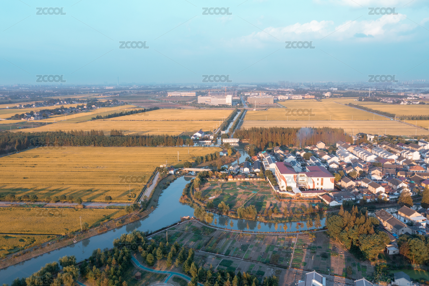 江苏,航拍,昆山,乡村,农村,田野,农业,水稻,河,天空