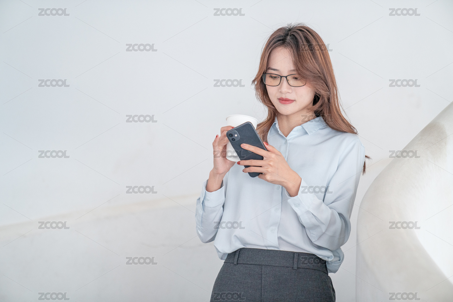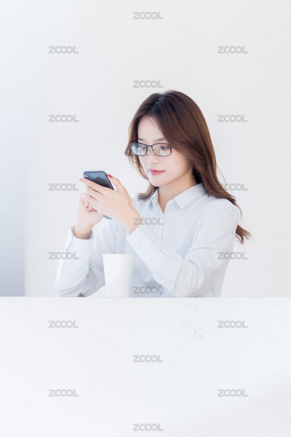低头看手机的美女