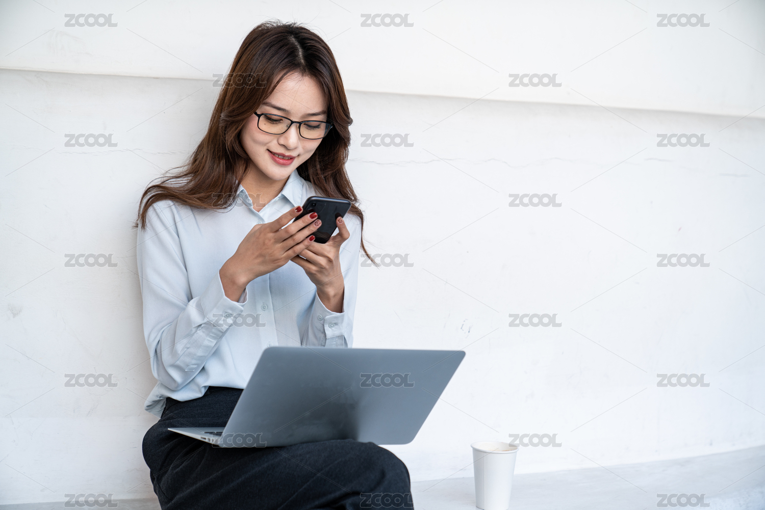 亚洲商务女性使用手机人像肖像