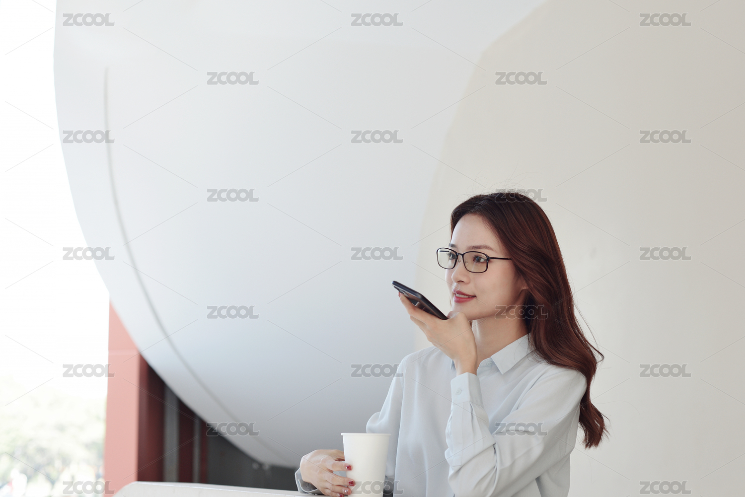 白色,白昼,办公,笔记本,操作,城市,打电话,打招呼,东方女性,耳机