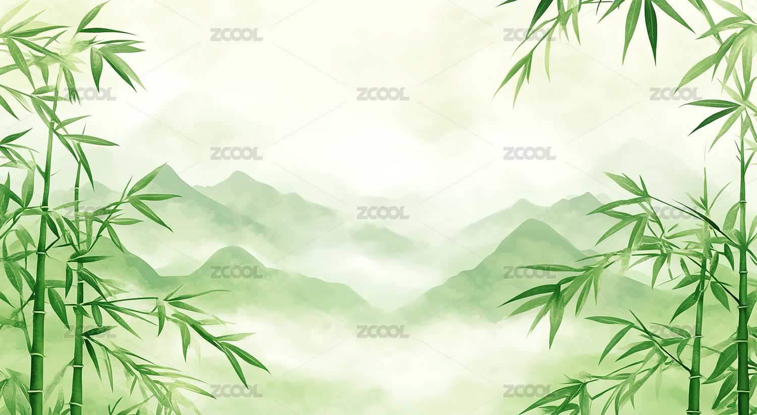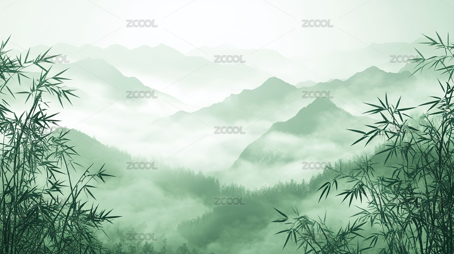 宁静,湖泊,远山,雾气,竹林,小舟,山水画,水墨画,中国风,意境