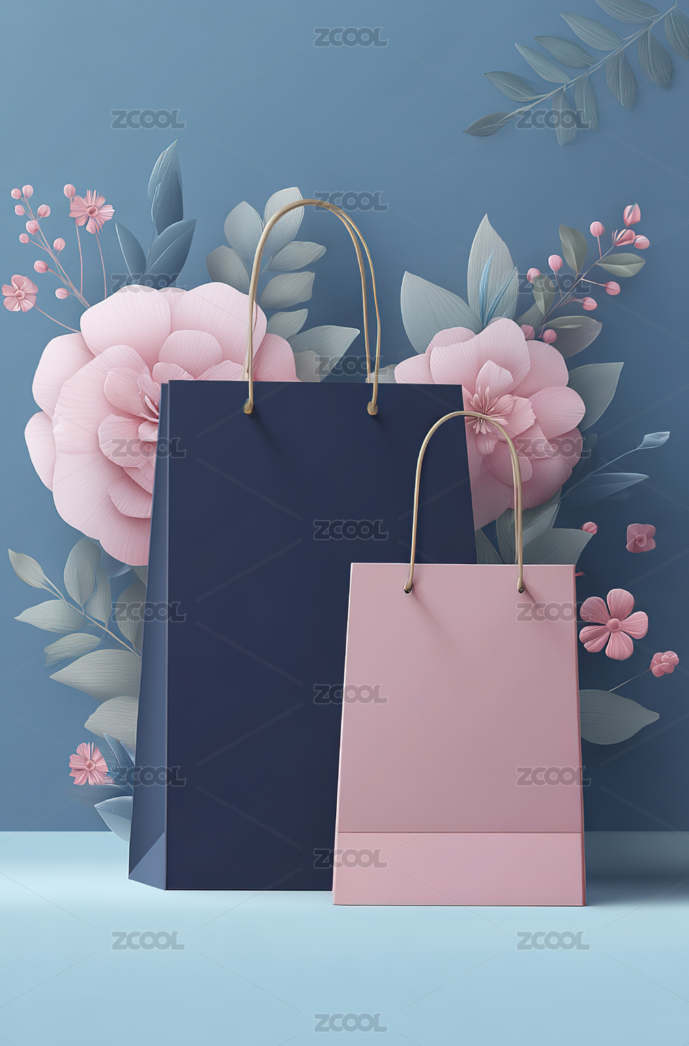 橙色,简约,3D,电商,购物,手机,购物袋,促销
