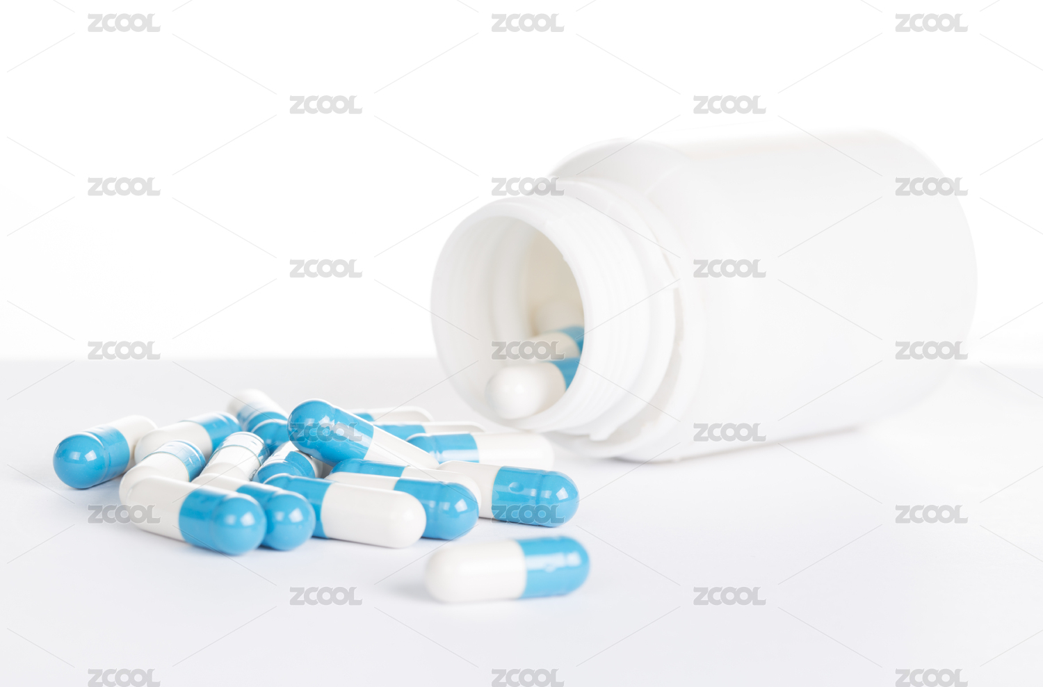 蓝色的胶囊和药瓶