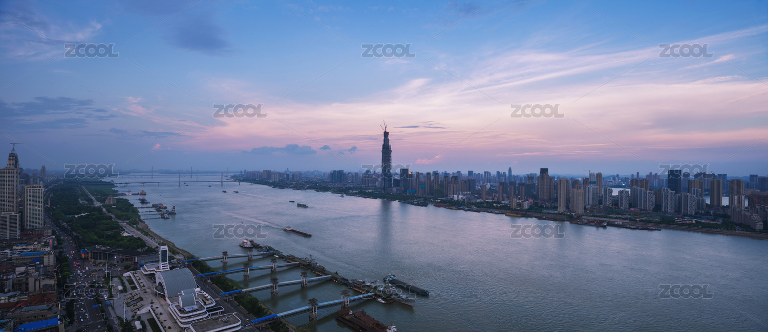 中国湖北武汉鹦鹉洲长江大桥傍晚时光