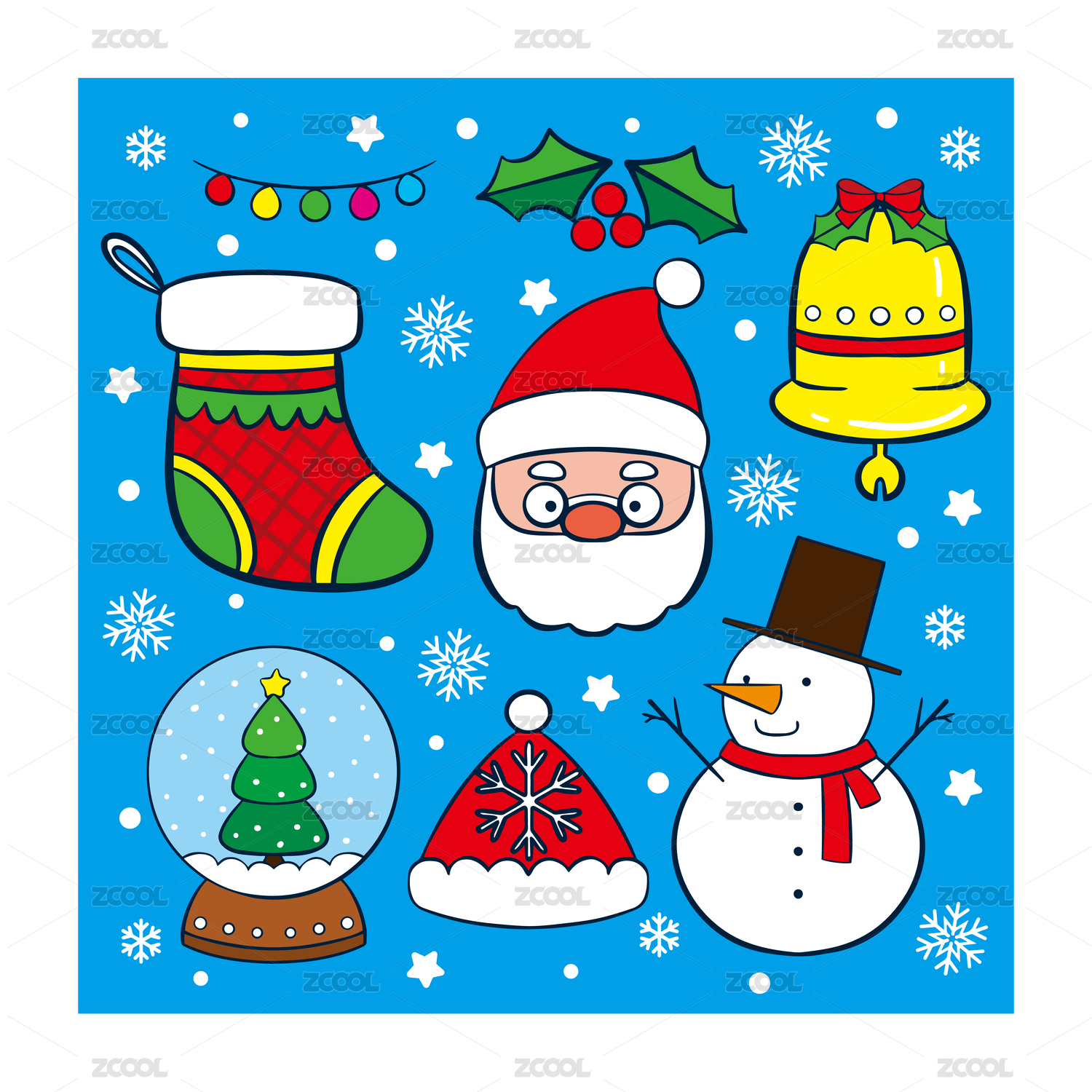 圣诞树,铃铛,帽子,彩灯,礼物盒,袜子,插画