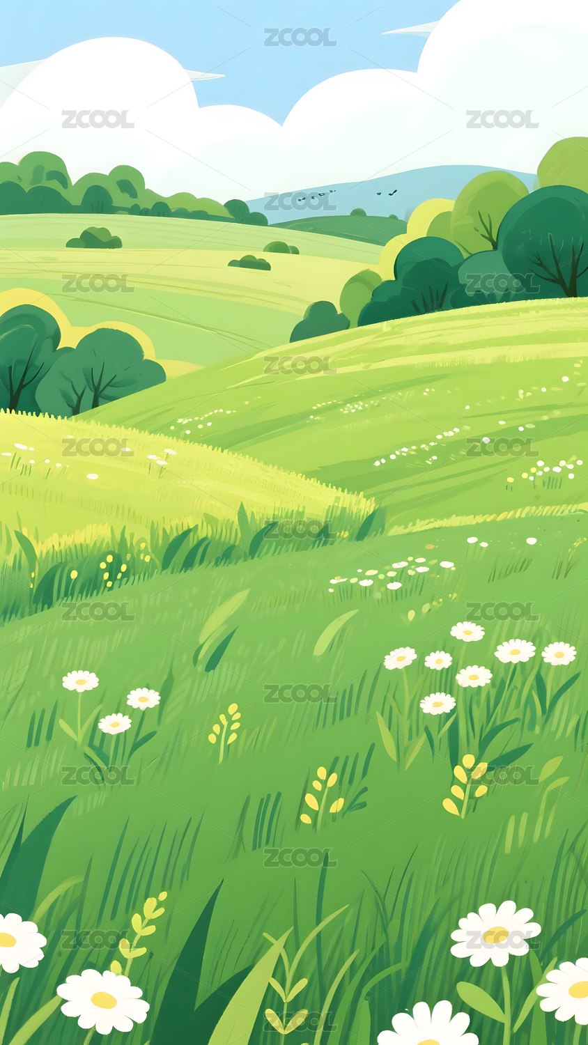 绿色春天户外田野插画