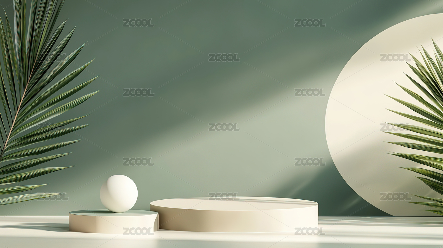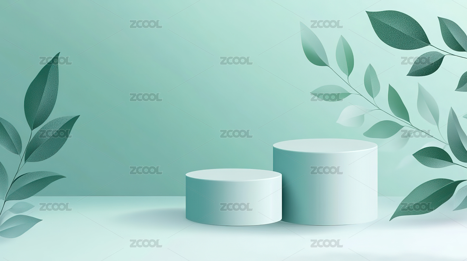 白色圆柱形展示台与绿叶背景