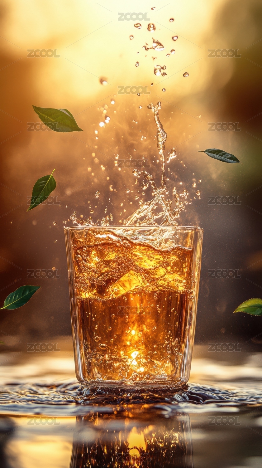琥珀色饮品溅起水花