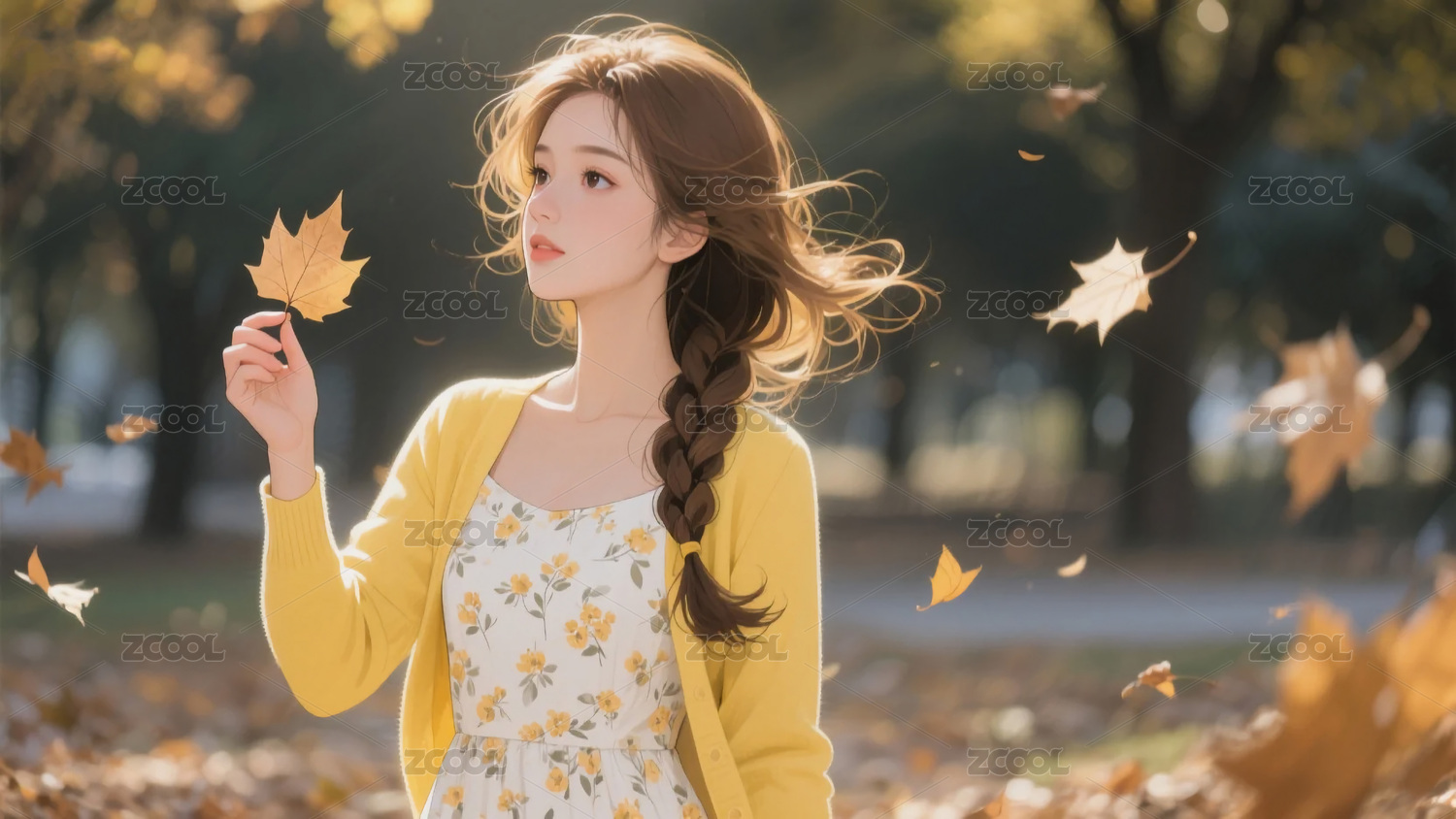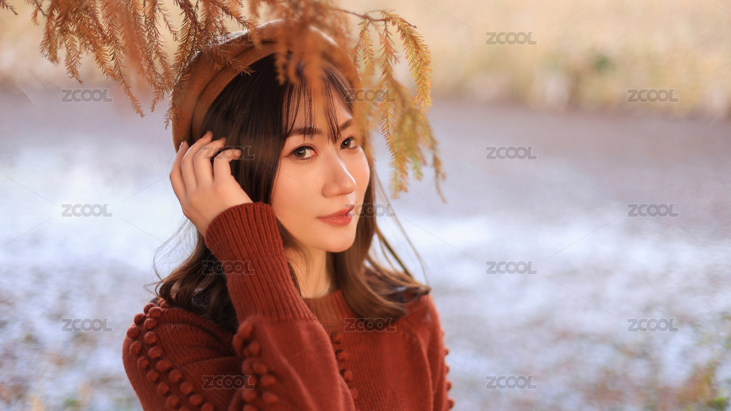 秋天午后在金灿灿的芦苇荡里的亚洲美女