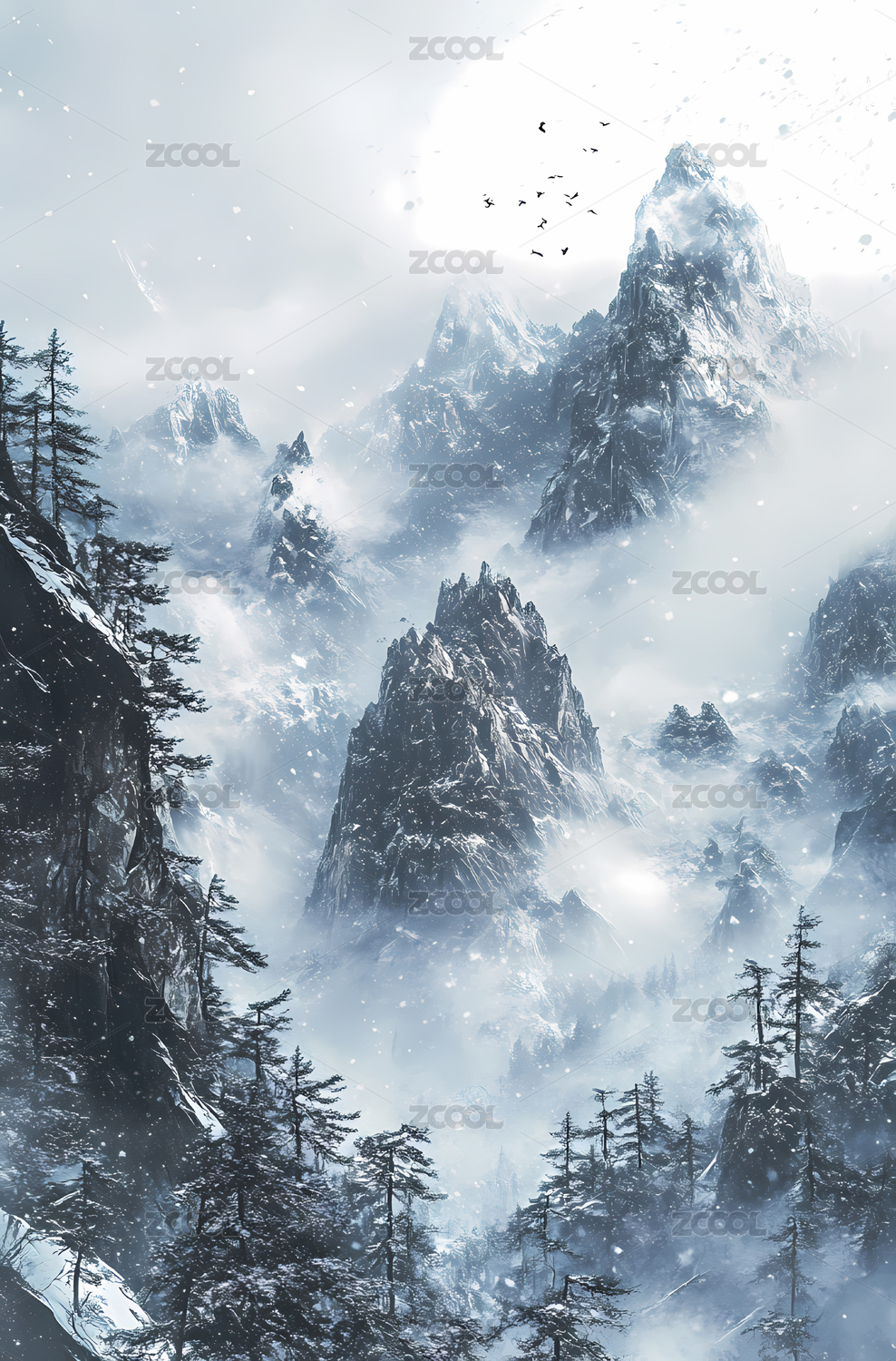 雾气缭绕的雪山山峰