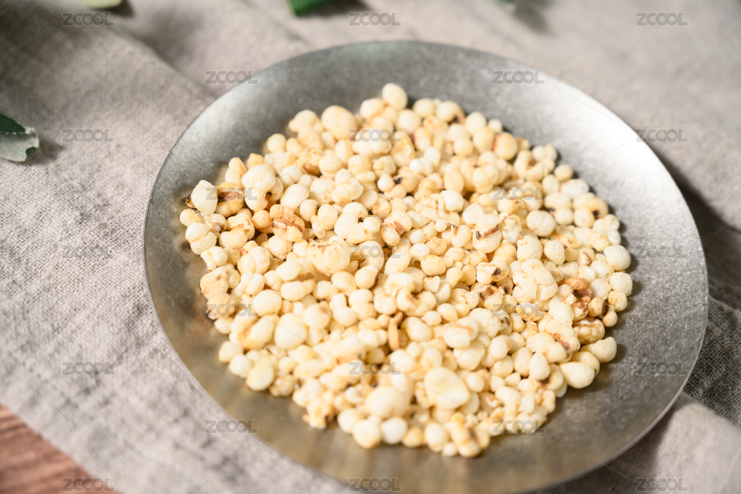 桌面上的盘子里的美味可口的炒薏苡仁