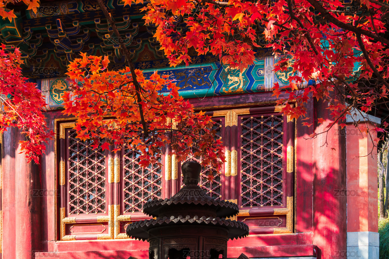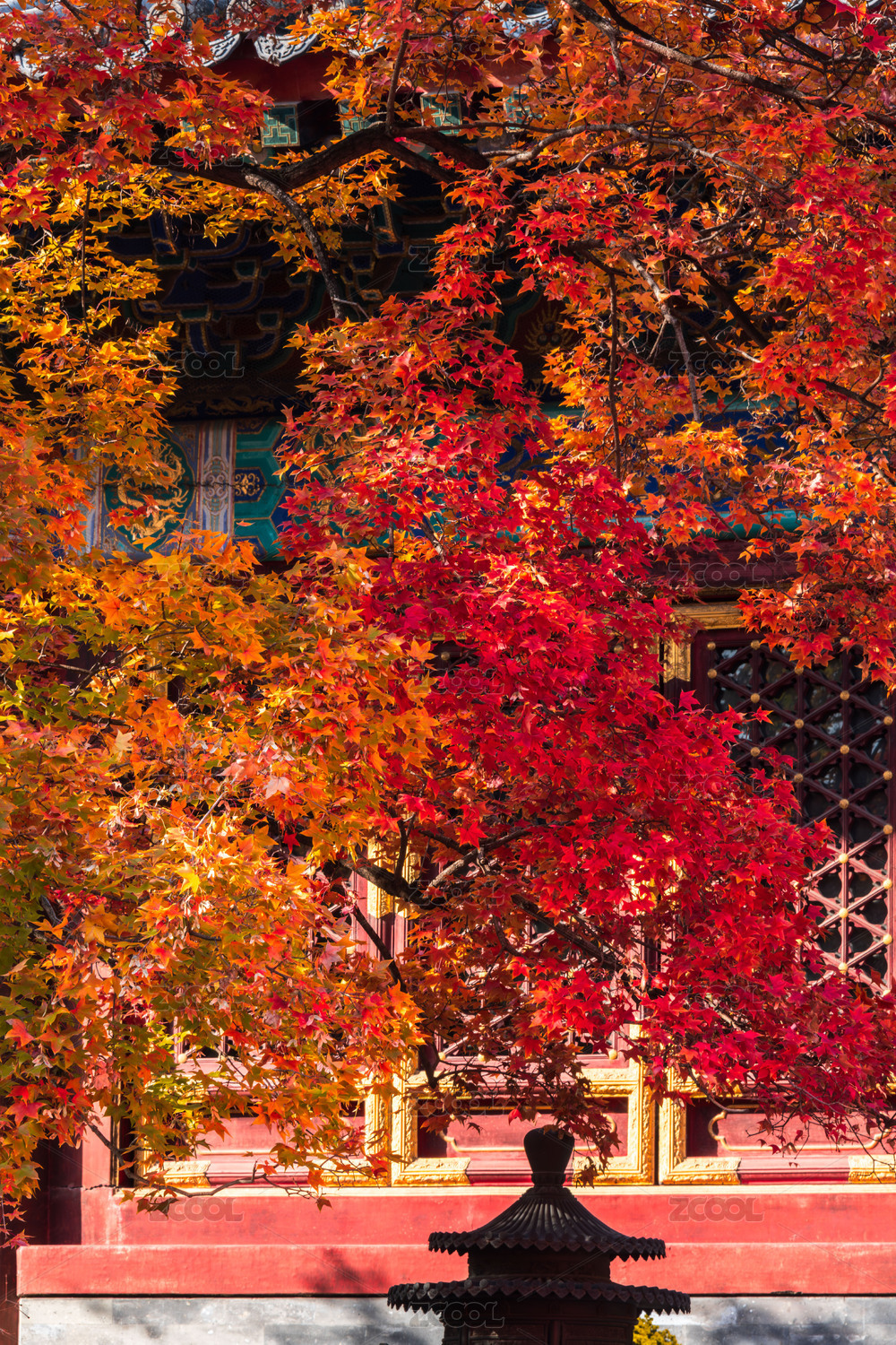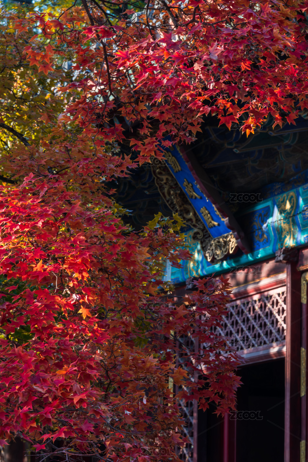 寺庙建筑 红枫
